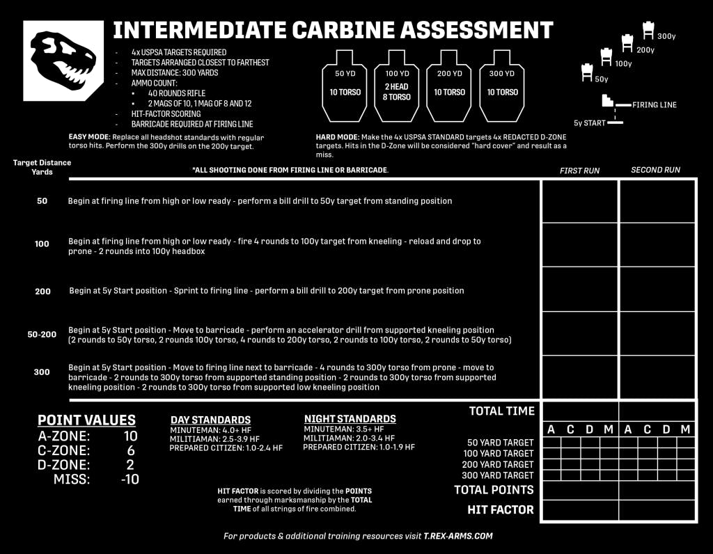 The Intermediate Carbine Assessment is built to gauge your performance as you push your scoped carbines to more realistic engagement distances. This assessment combines speed and accuracy, revealing how well you can maintain accurate hits without losing the fundamentals.