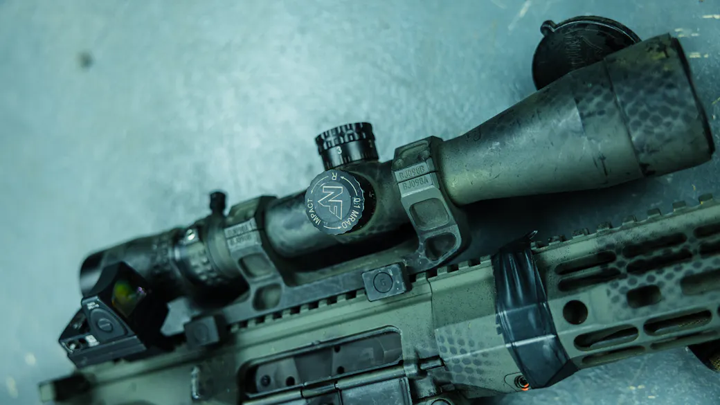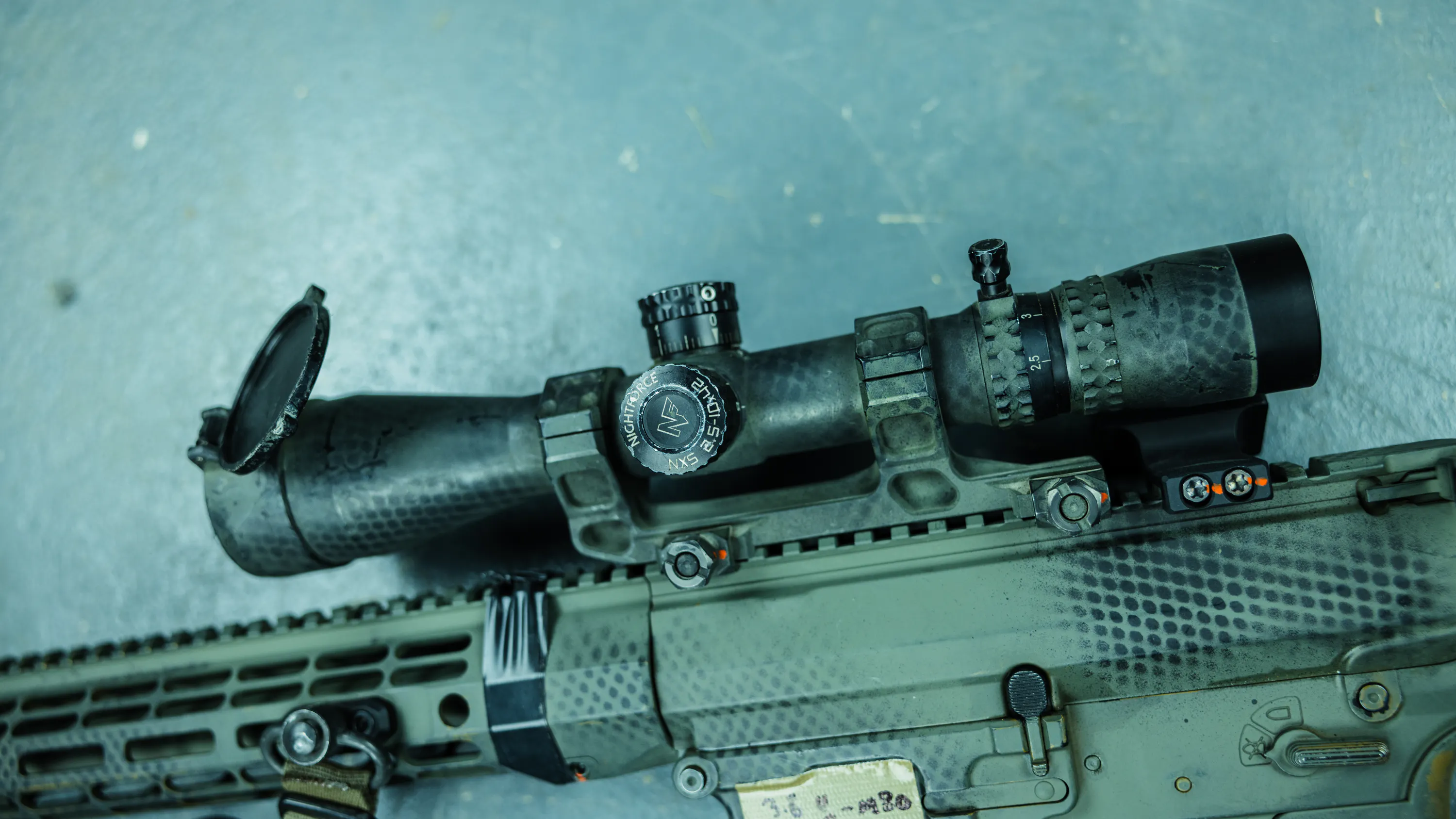 Our optic of choice for this round was the NightForce NXS 2.5-10 with a Geissele scope mount. This NXS has been kicking around our armory for quite a while and has been on many different builds over the years. This optic is second focal plane, unlike all of the LPVOs we've been using. This means the holds on our MIL reticle are only accurate at full magnification. While this can be a downside, these optics can still be practical, with a little more time dedicated to learning the system.