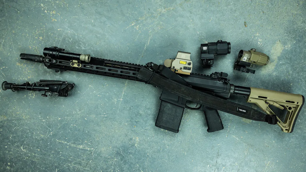 For our first loadout, we wanted to see how different this large-frame .308 was compared to the 5.56 guns we are accustomed to. To do this, we swapped a few things around and used an optic and light setup that we were familiar with to establish a good baseline.
