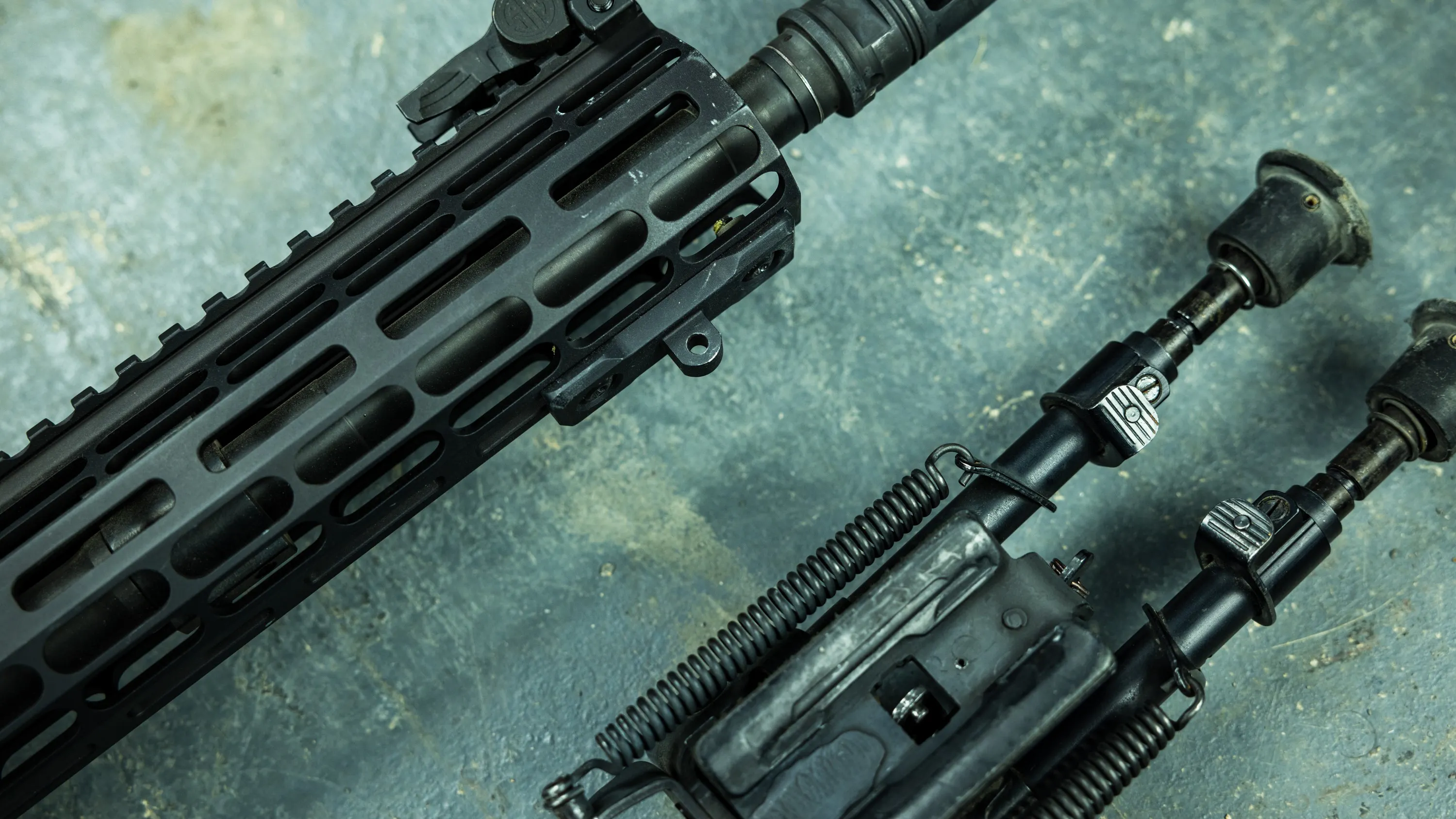 We also added a Magpul M-LOK bipod mount to the bottom of the rail. This allows us to attach one of our Harris bipods, making zeroing and shooting in the prone much easier. Once the bipod is removed, the mount takes up a minimal amount of space.