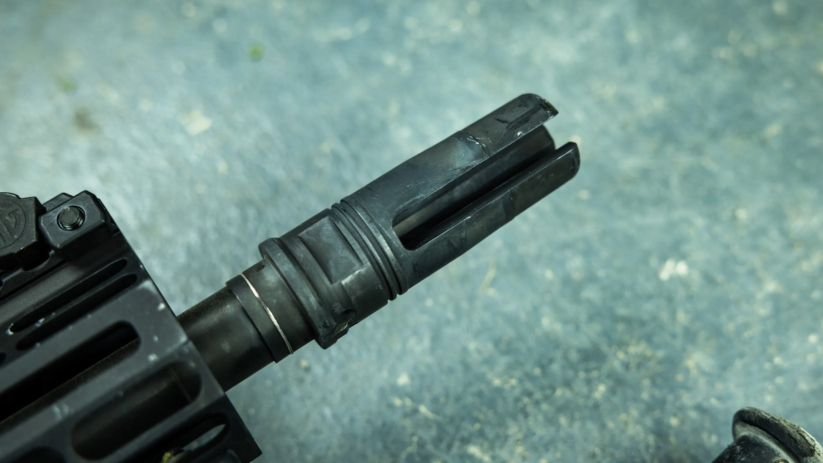 While the standard birdcage muzzle device would have been perfectly adequate, we swapped it out in favor of a SureFire 3 Prong. We do plan on running a suppressor down the road, so once we reach that point, we can attach our SureFire suppressor without further effort.