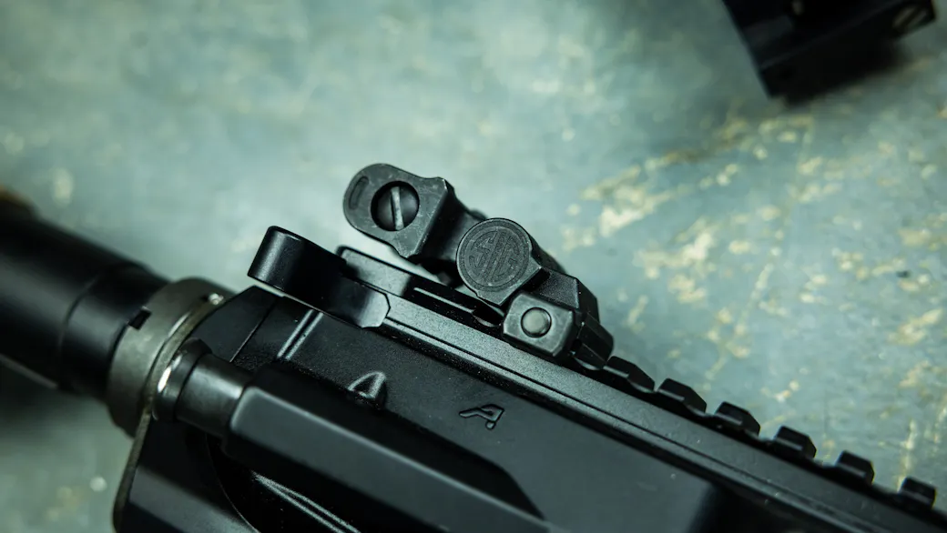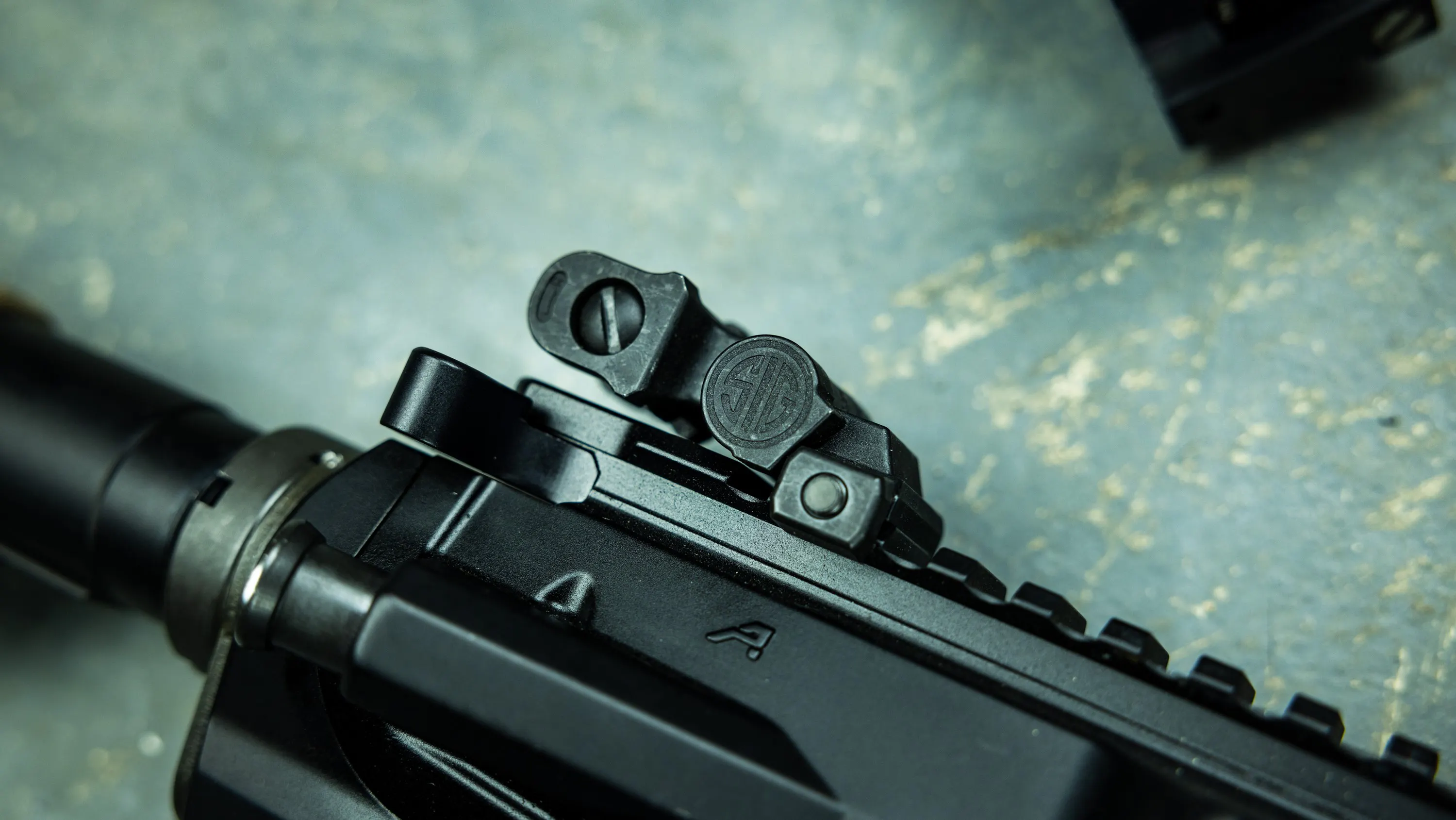 We also added these Sig Sauer folding irons for backup sights. These have become one of our preferred sets of folding irons as they are built exceptionally well and lock in place when folded up. These are also priced fairly, considering their build quality and other options on the market.