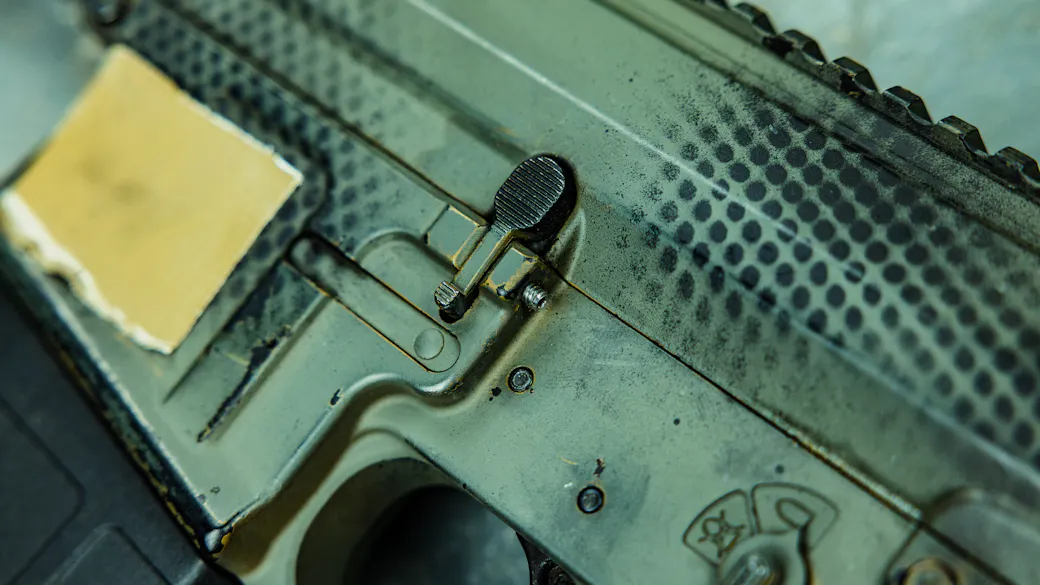 On the second day, we had a mixed bag of issues. The threaded pin for the bolt catch worked its way loose, as pictured above. While this didn't completely fail, if we hadn't caught the issue quickly, we could've lost the pin, which may have prevented the bolt from locking back or caused some other type of malfunction. Once we returned to the armory, we applied blue threadlocker to the pin and reinstalled it. However, for a factory-built gun, this is something we'd like to see already completed upon arrival.