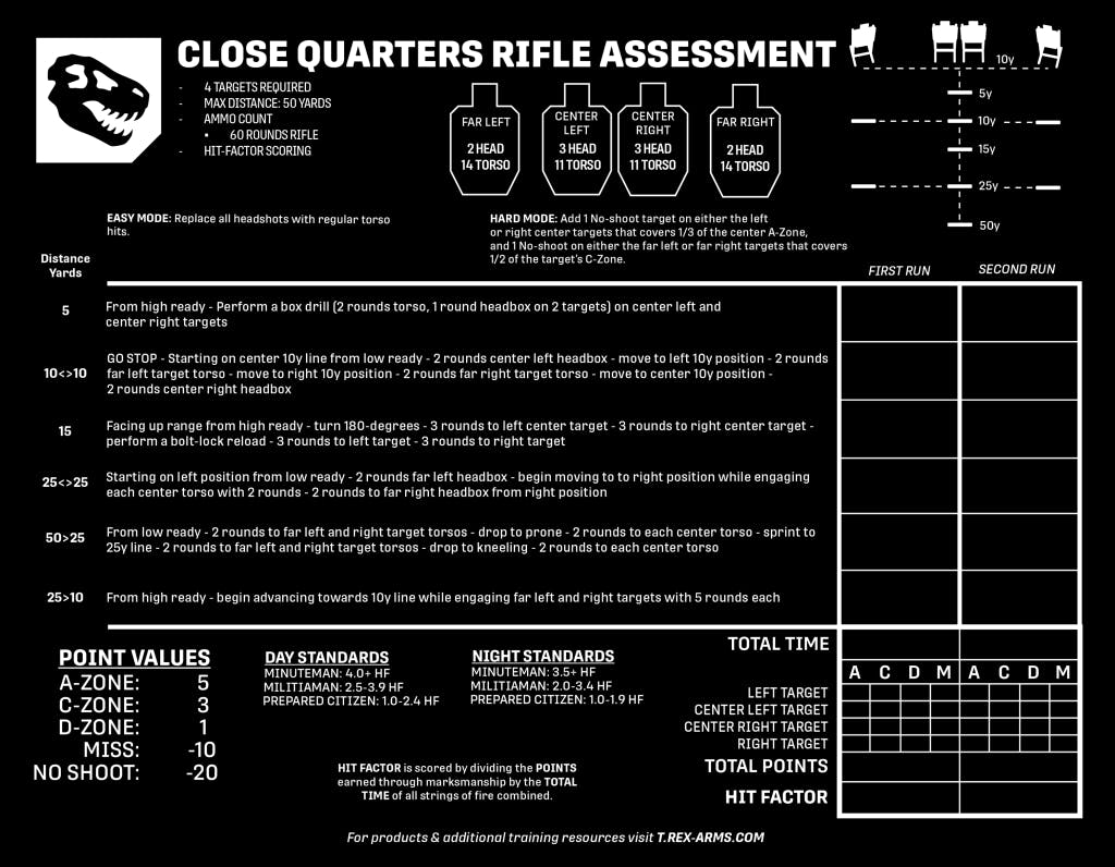Click the image and download the Close Quarters Rifle worksheet that includes a complete set of instructions on how to run the course, along with space to record hits, track times, and take notes.