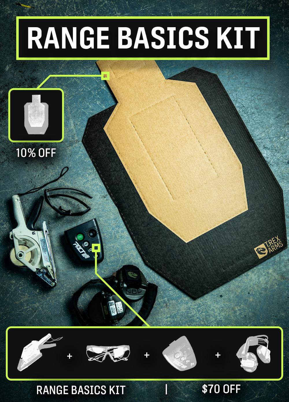 Shooter ready? The Range Basics Starter Kit gives you what you need to start training purposefully, including a shot timer, target pasting equipment, and even our preferred PPE. Throw in a pack of our Redacted D-Zone targets, and you're ready to hit the range.