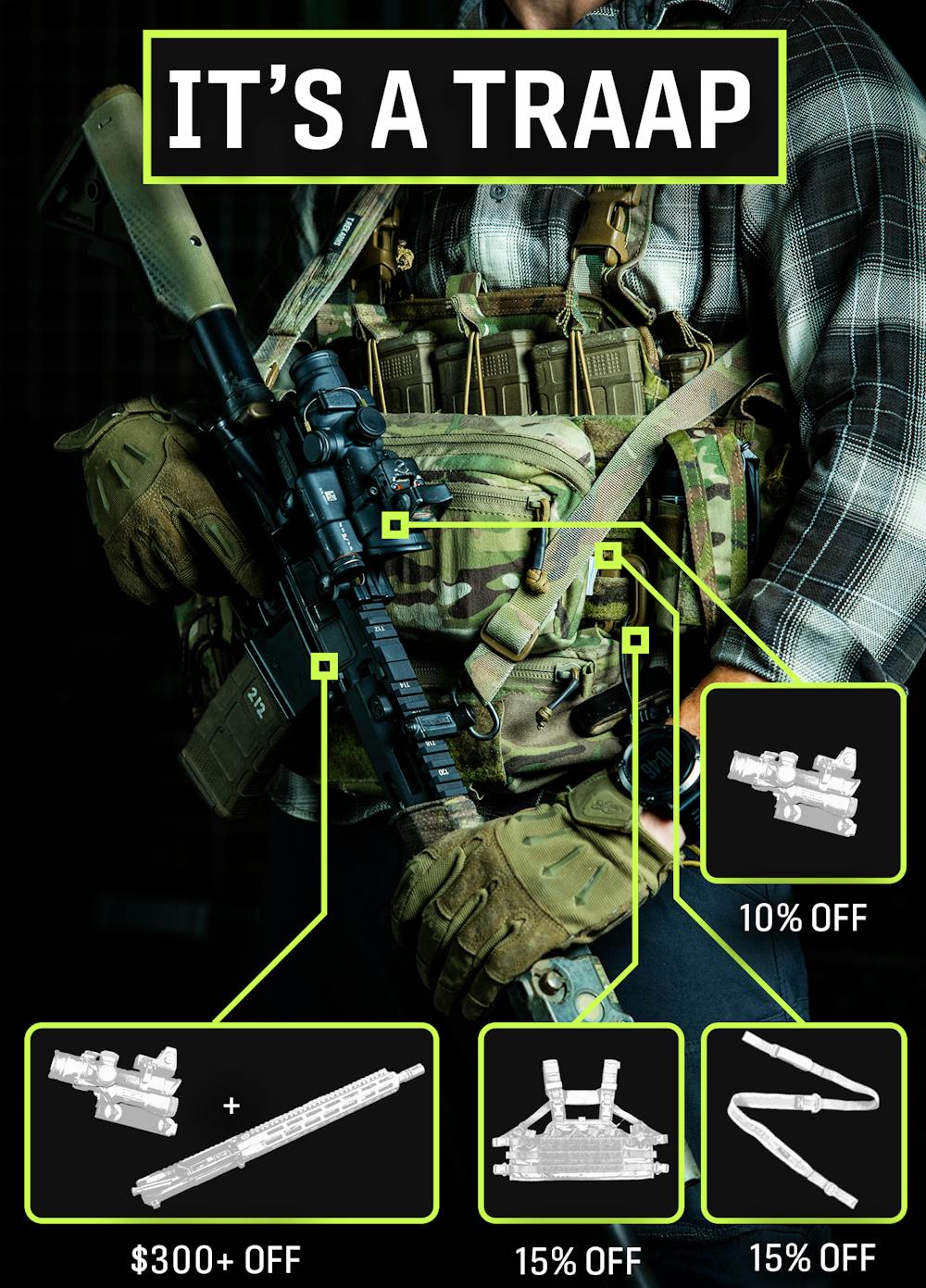 The TRAAP takes inspiration from the well-known Tactical Assault Panel, commonly called the TAP. We took this well-vetted design, scaled it down, modernized it, and made a few quality-of-life improvements to bring the TAP up to par with modern equipment. The TRAAP is currently 15% off under our Early Access Black Friday Sale! To go along with the TRAAP, we've also got some deals on Slings, ACOG/RMR combos, and even a BCM Upper Combo that includes the ACOG/RMR.