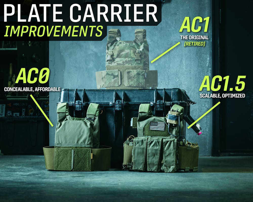 For most of you, the AC1 needs no introduction. It was one of our first major nylon products, spurred on by the high demand for armor and, subsequently, plate carriers after the mostly peaceful summer of 2020. Initially, the AC1 was meant to be a minimalist carrier that could scale to meet the user's needs. While the AC1 has served this role well over the last 4 years, we are always seeking improvement, so we went back to the drawing board and decided on a two-pronged approach to how we do plate carriers. Goodbye AC1, welcome AC0 and AC1.5!