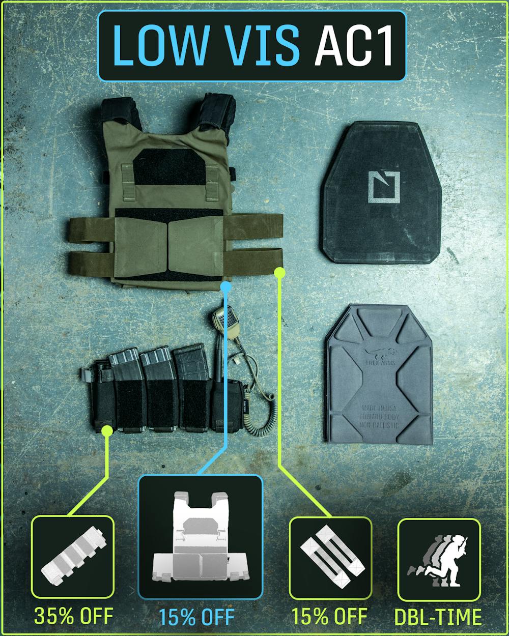 It's Monday, which means this is the last day of our storewide Black Friday sale! We still have over 70% of our items in stock, so if you've been saving up to buy a certain piece of gear, you've still got a good chance at picking up what you need. Today, we're highlighting some of the low-vis capabilities of our AC1 carrier. Pair the AC1 with our slick cummerbund, a shingle, and the armor of your choice, and you have a concealable yet capable way of carrying ammunition and armor.