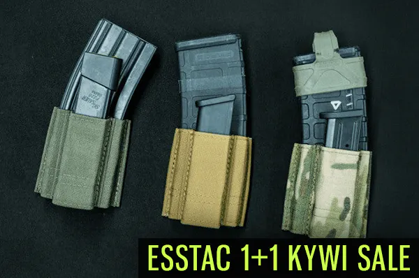 Esstac 5.56 1+1 KYWI mag pouches are a great option for those wanting to carry a rifle and pistol mag without taking up too much belt space. Currently, they are on sale for 15% off, so pick them up while you can. Note: All 1+1 pouches are Wolf Grey.