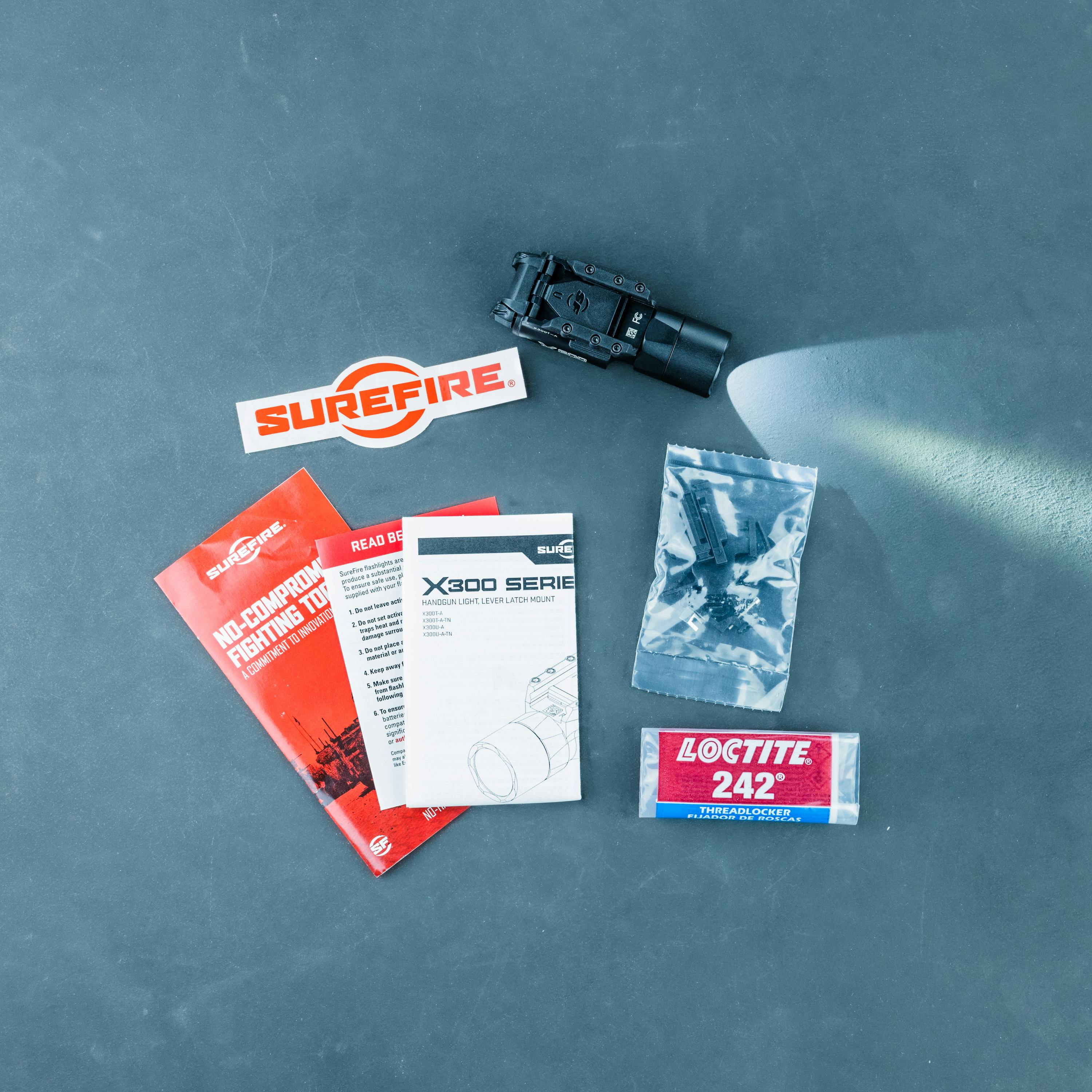 This increased “throw” is still generated off two CR123 batteries with a 90-minute runtime. It comes in two models, the “A” and “B”. These signify the attachment system of the light. The A model features SureFire’s Rail-Lock system latch attachment. Simply pull down on the two levers on the side of the light and slide the X300T onto the rail system. It will then lock in place. The B model has a T-slot mounting solution that is tightened by hand and then turned a half rotation with a flathead screwdriver, bullet casing, knife, etc.