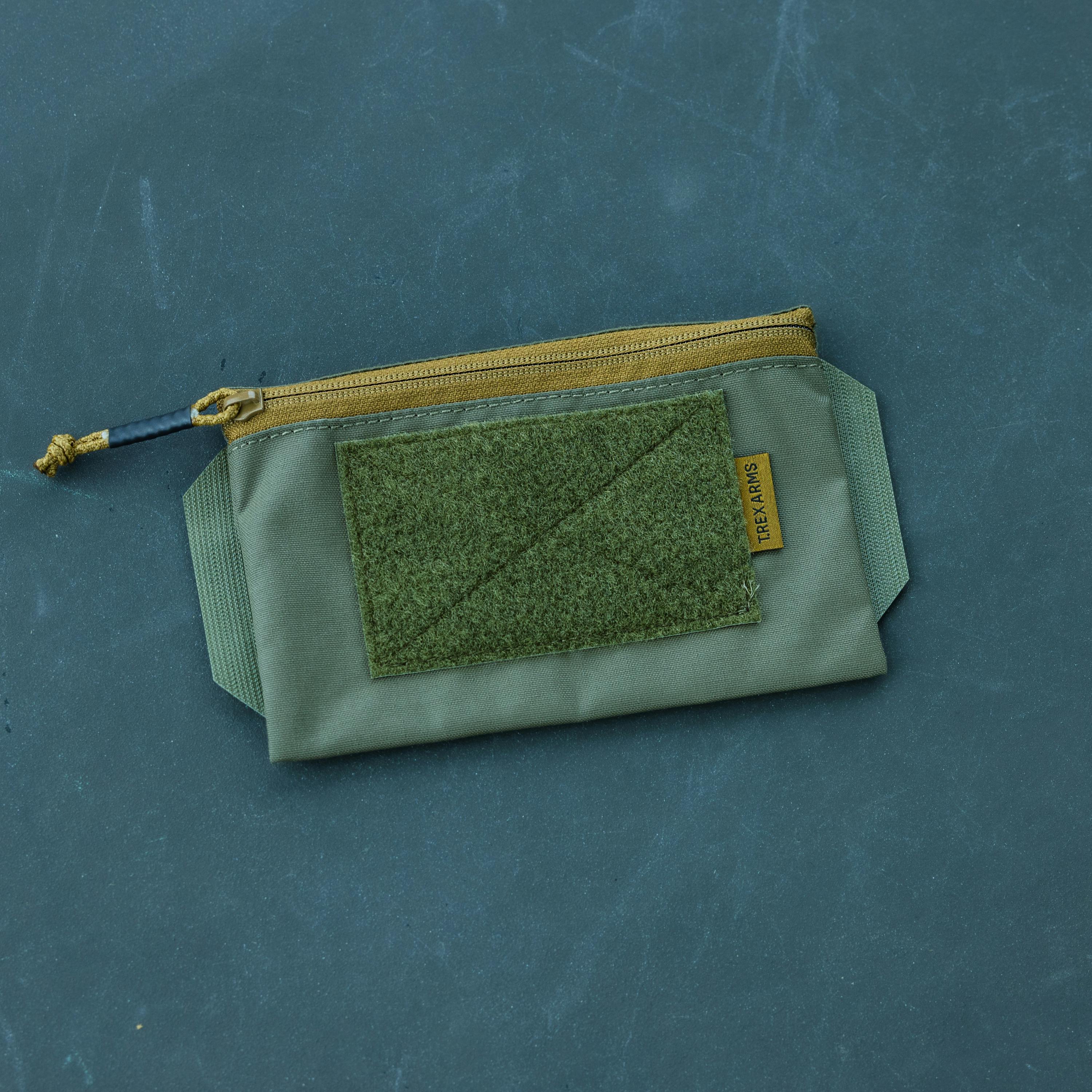 Slim, simple, secure pocket organizer for tools and accessories. Can be used with bags, carriers, chest rigs, etc. Unique to this product is the addition of hook-backed wings to add surface tension that prevents unwanted peel-off and detachment.