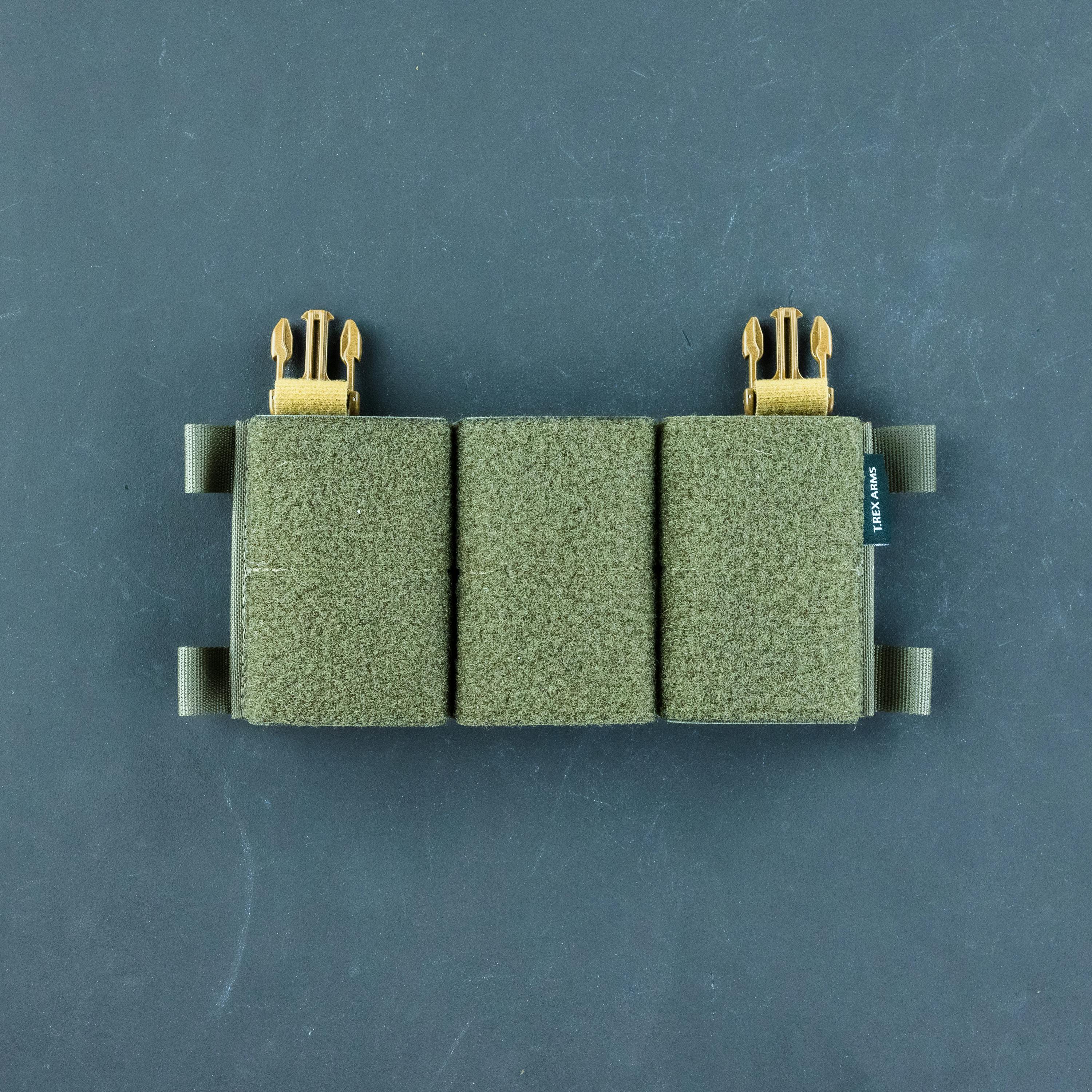 Has three 3″ wide mag pouches. Fits .223/5.56 magazines. Can also be used for 5.45×39 magazines.