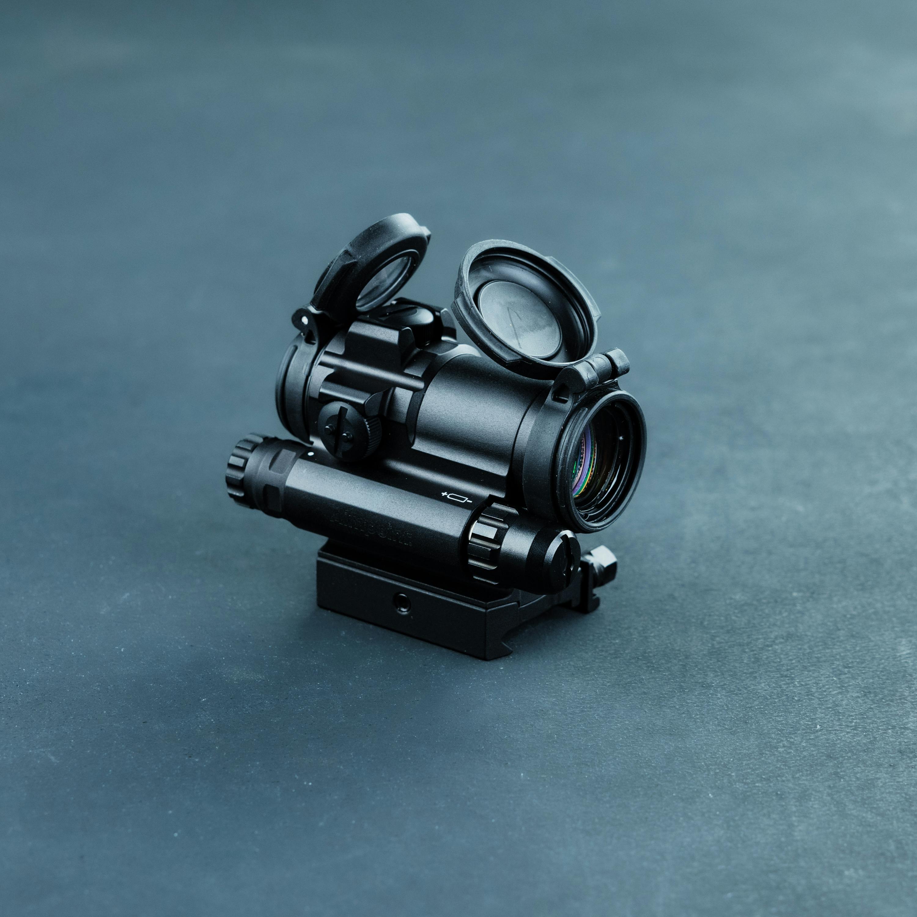 • Flip-up lens covers – front is solid, and rear is transparent – allowing the user to shoot with both eyes open and lens caps closed in an emergency situation.