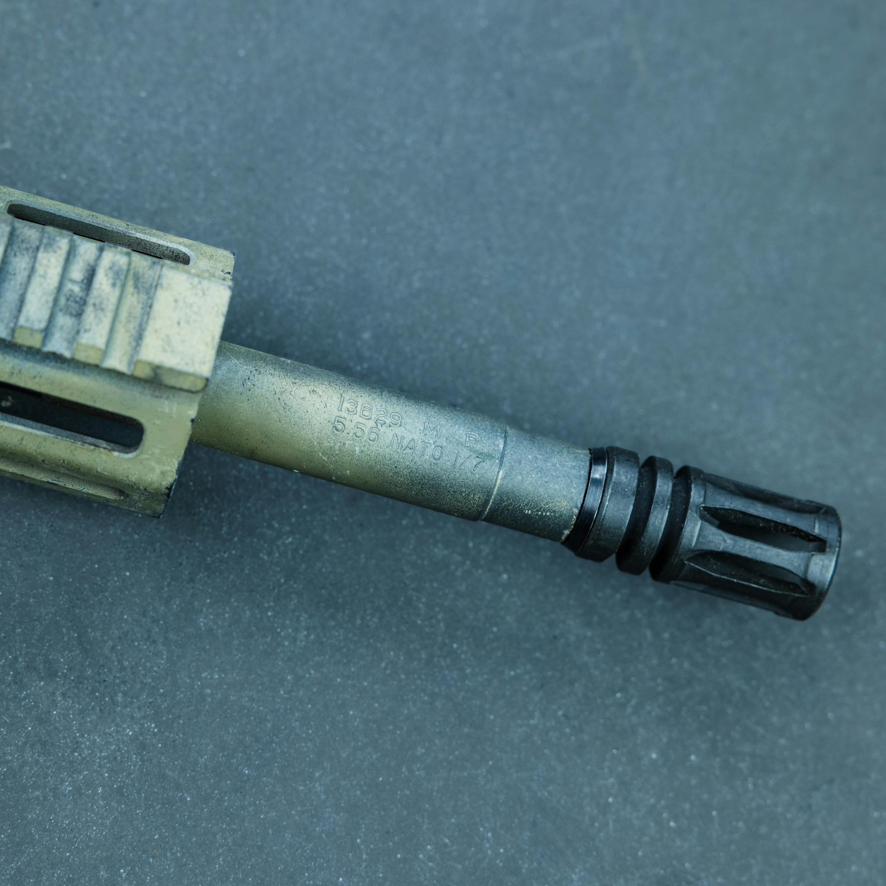 This URG comes with an A2 birdcage flash hider and barrel nut wrench, but does not include a bolt carrier group or charging handle. It has approximately 1,000 rounds through it.