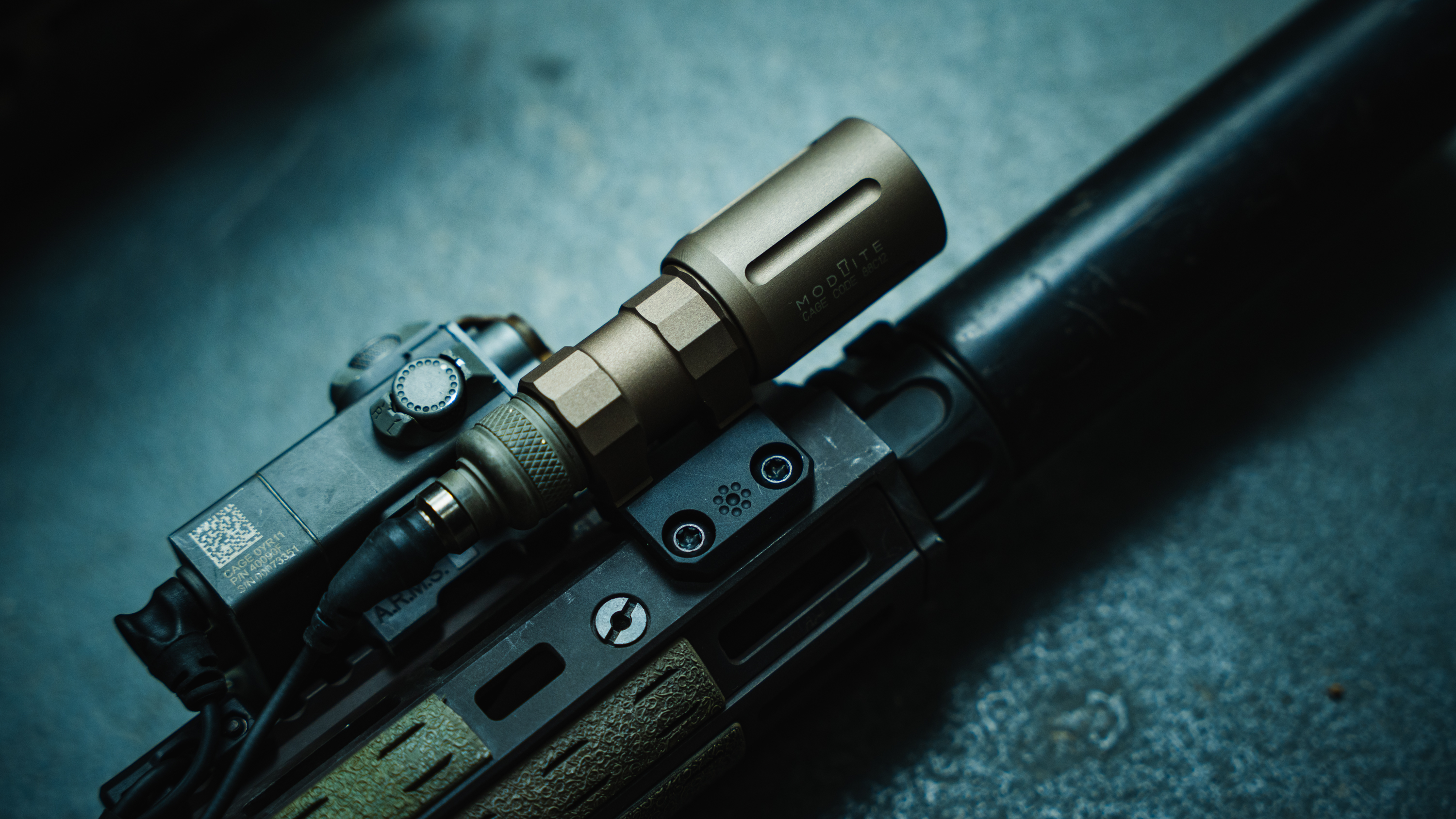 Modlite is an old favorite of ours, and now they’re back on the menu. The 18350 is their small-body version, which trades the 75-minute runtime of the 18650 for a shorter 35-minute runtime, but offers a smaller footprint, making it perfect for 300 Blackouts and subguns. The OKW head is focused on throw and a hot center beam, while the PLHv2 head is well balanced and offers a good mix of flood and throw.
