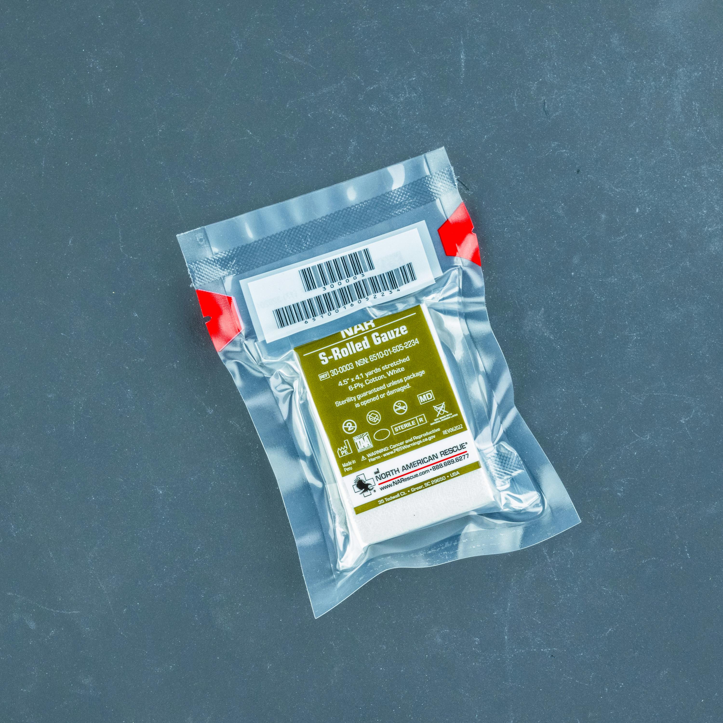 The North American Rescue S-Rolled Gauze is made from premium cotton and can be used for everything from minor wounds to a backing for hemostatic dressings. The unique packaging allows for simple and controlled application while protecting unused gauze from contamination.