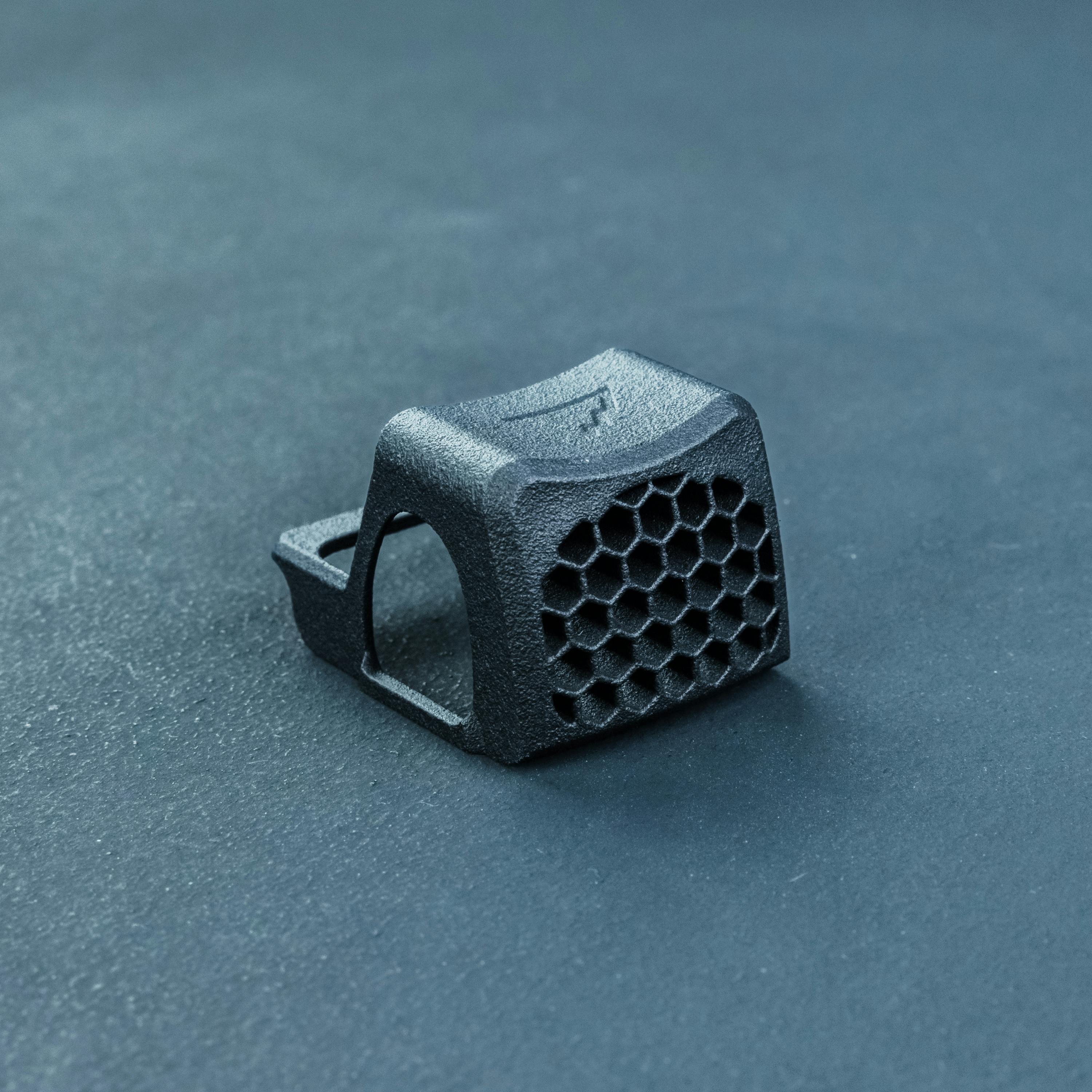 The HexCap from One Hundred Concepts is a simple, snap-fit anti-reflection device that is lightweight, low profile, and durable. The HexCap offers full reflection elimination for anything over 33 degrees from the viewing axis but still has a significant signature reduction to viewers directly in front of the optic. We find these especially useful in applications where you have a top-mounted or offset MRDS.