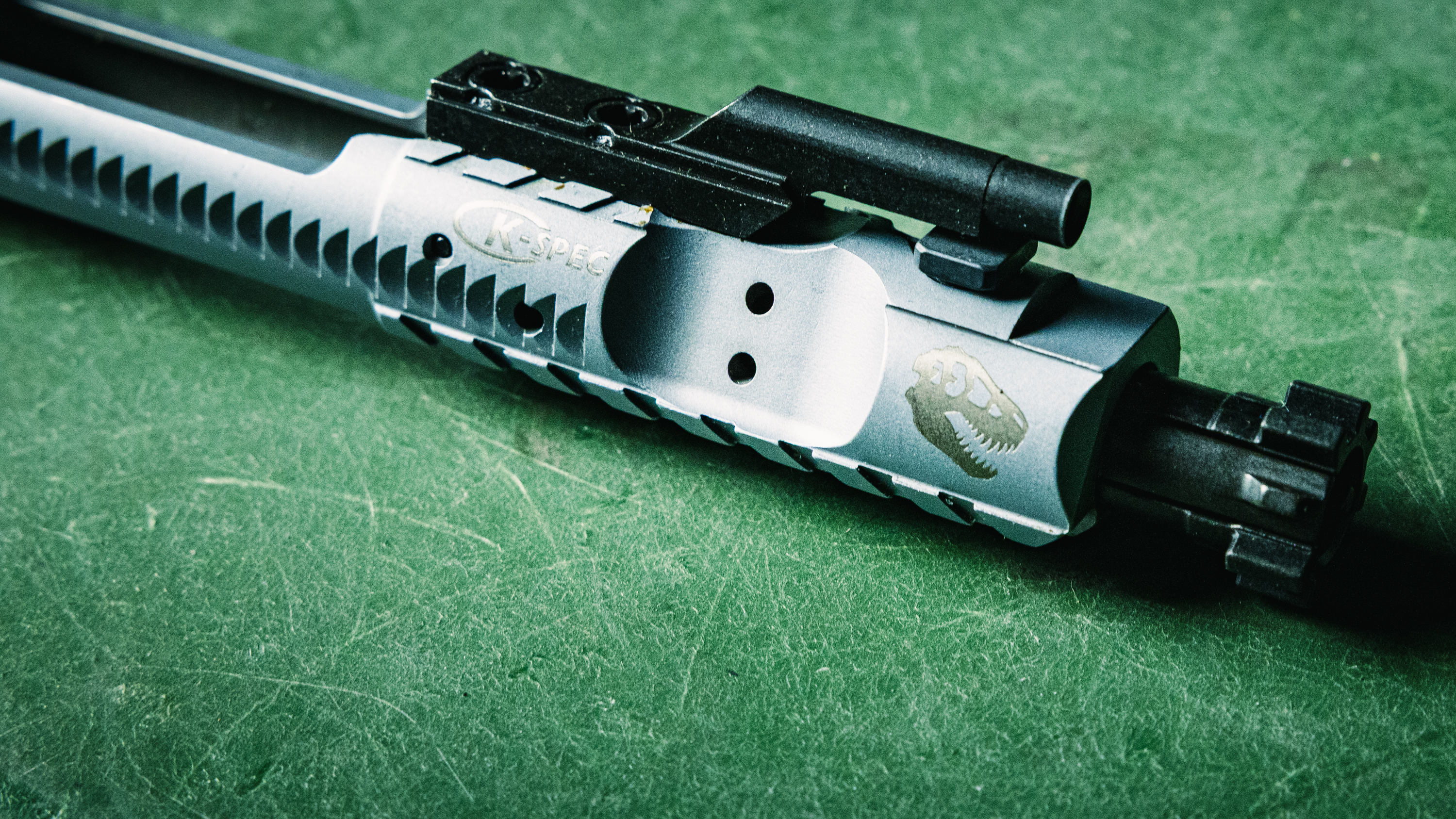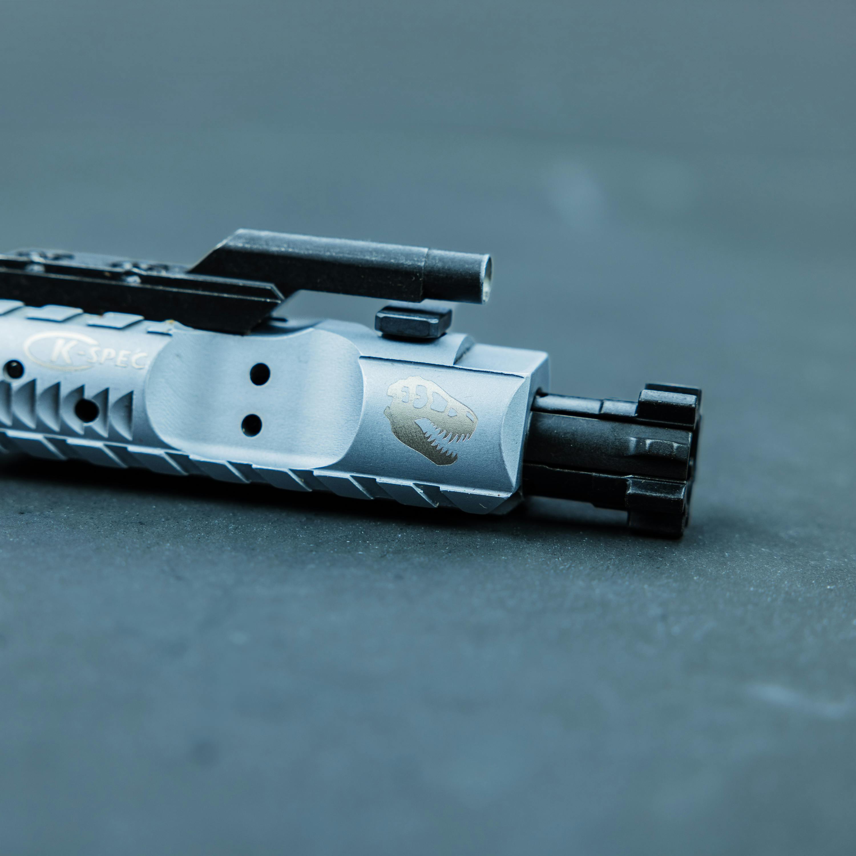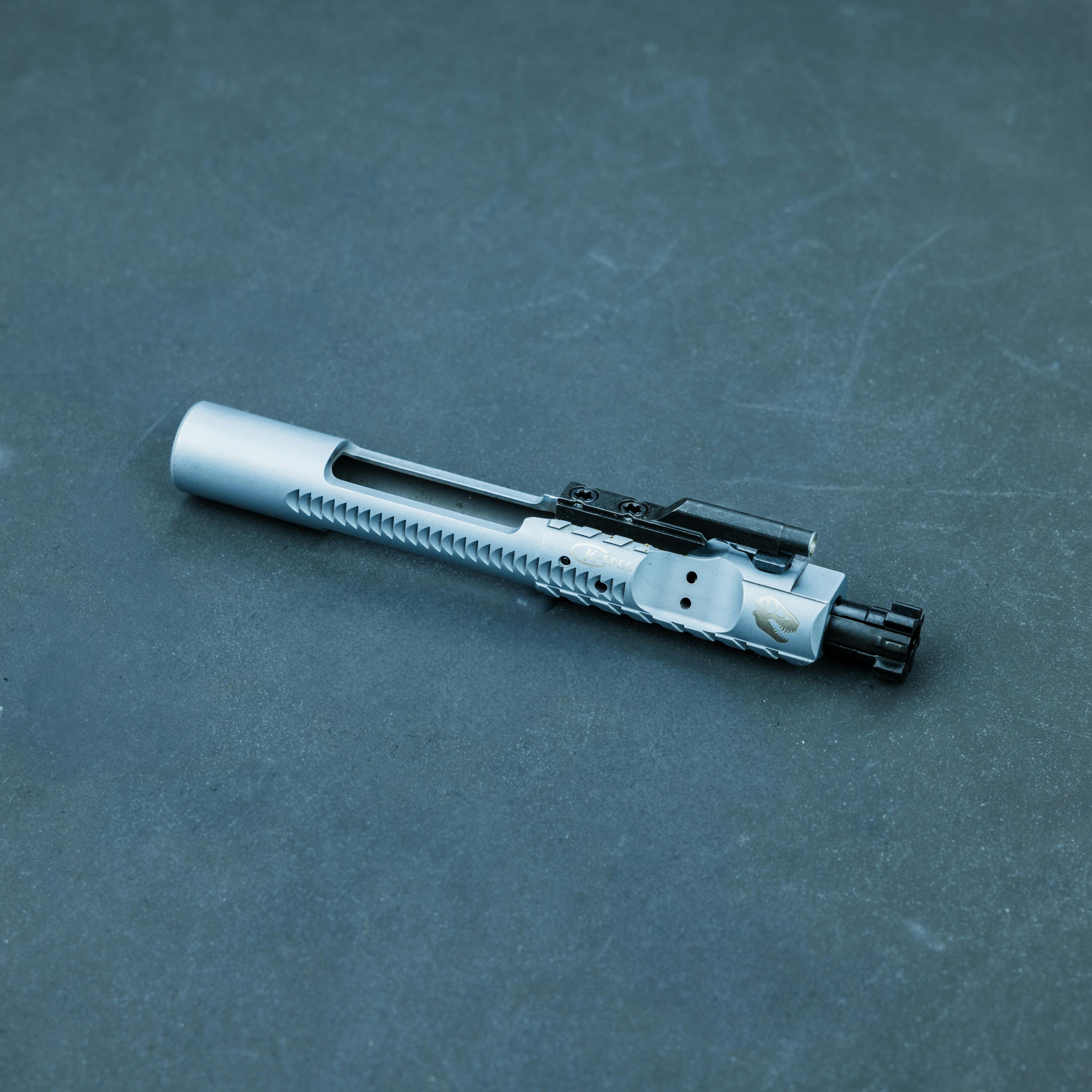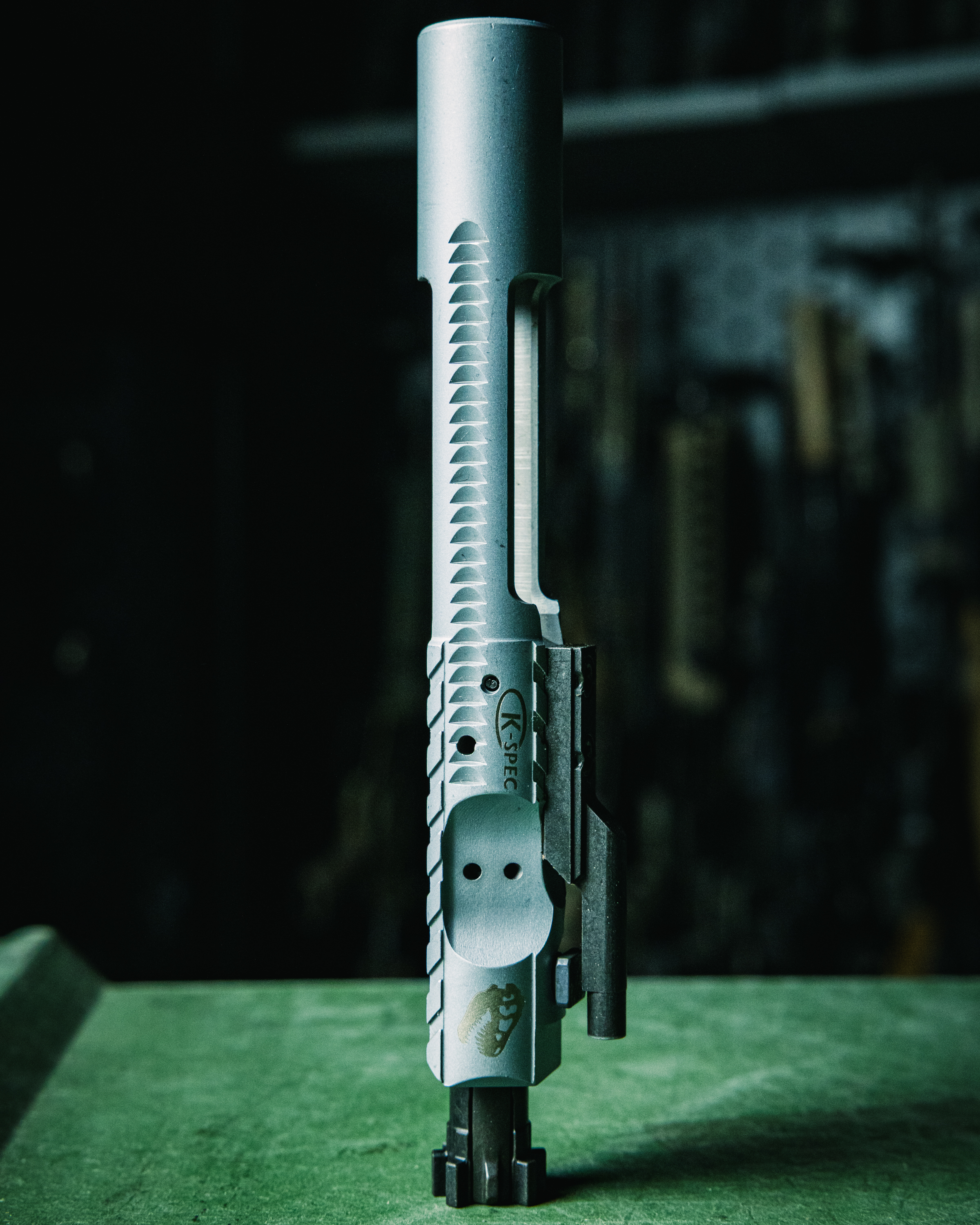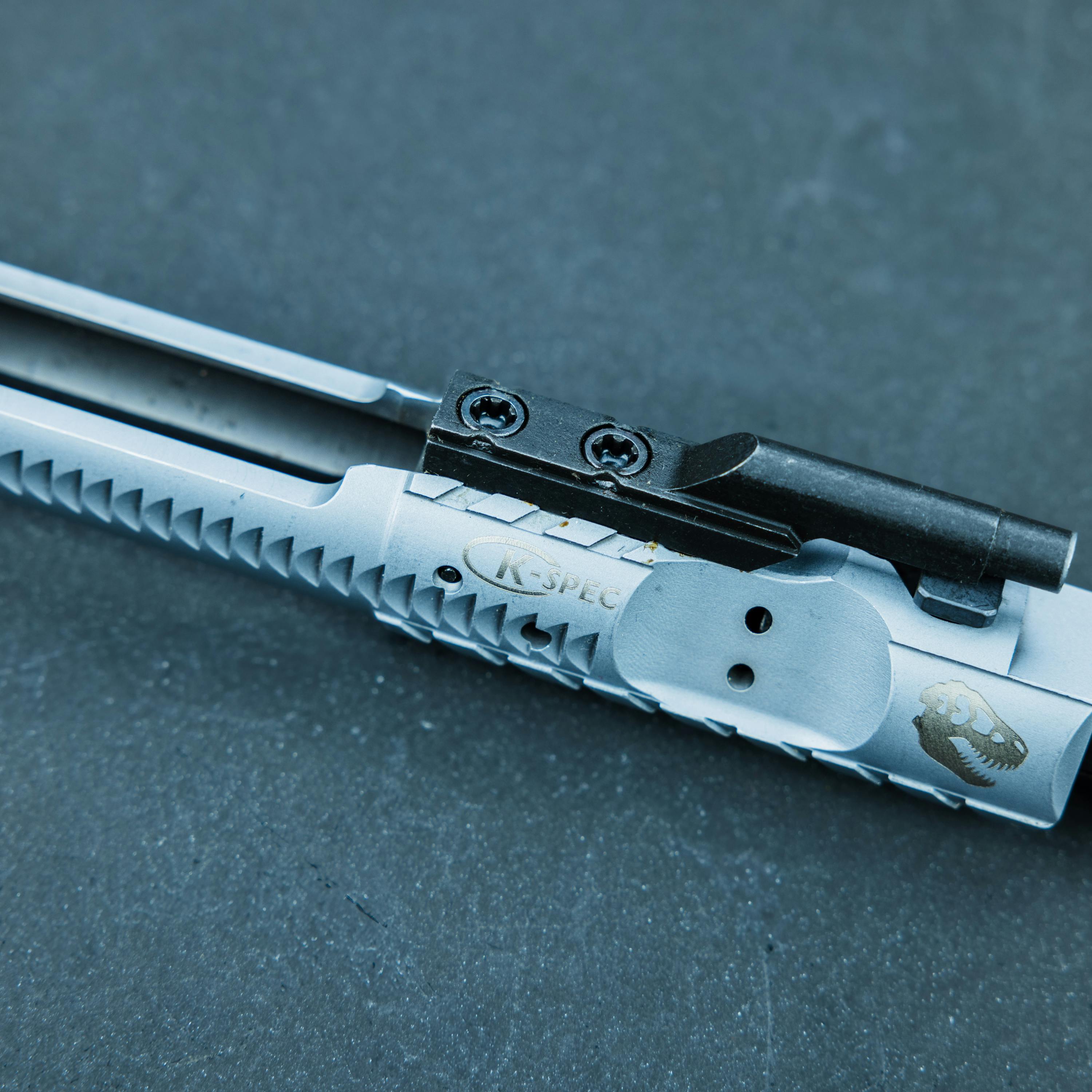 - Bolt assembly machined from Mil-Spec Carpenter No. 158 steel, shot peened