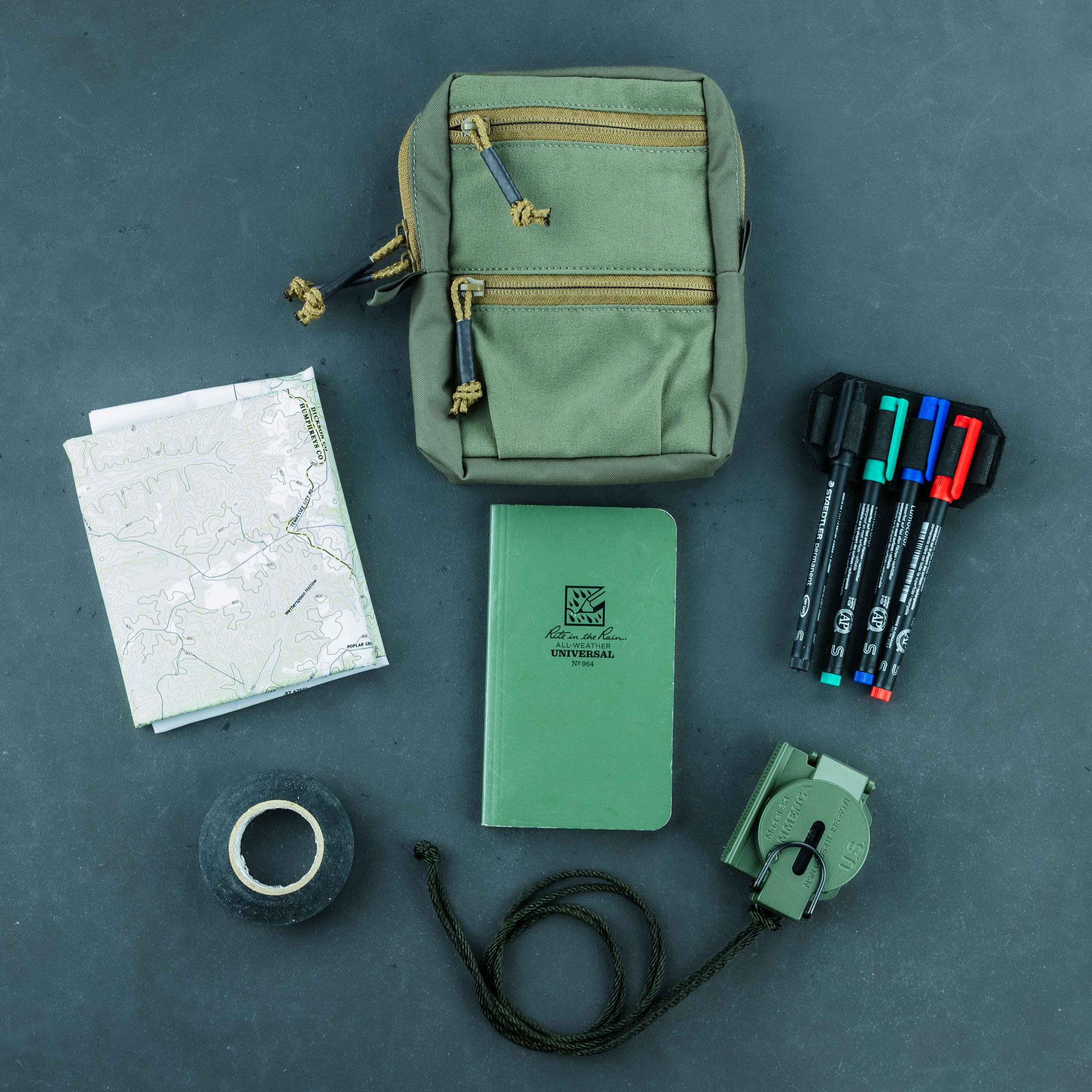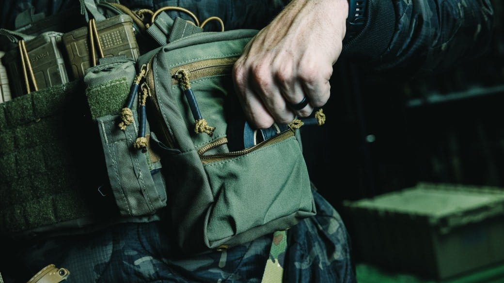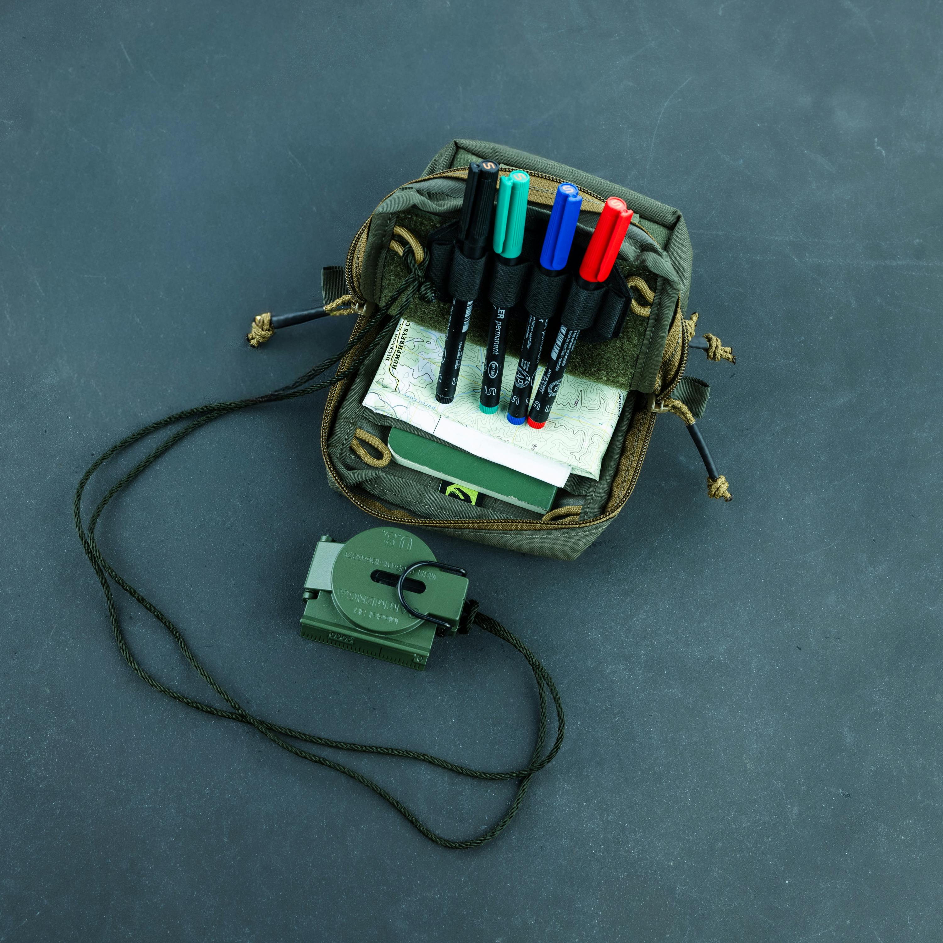 - The main pocket features a Velcro loop field for organization and four internal tie-downs to keep important or valuable items attached to the pouch.