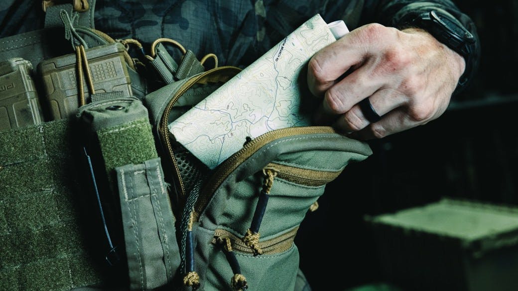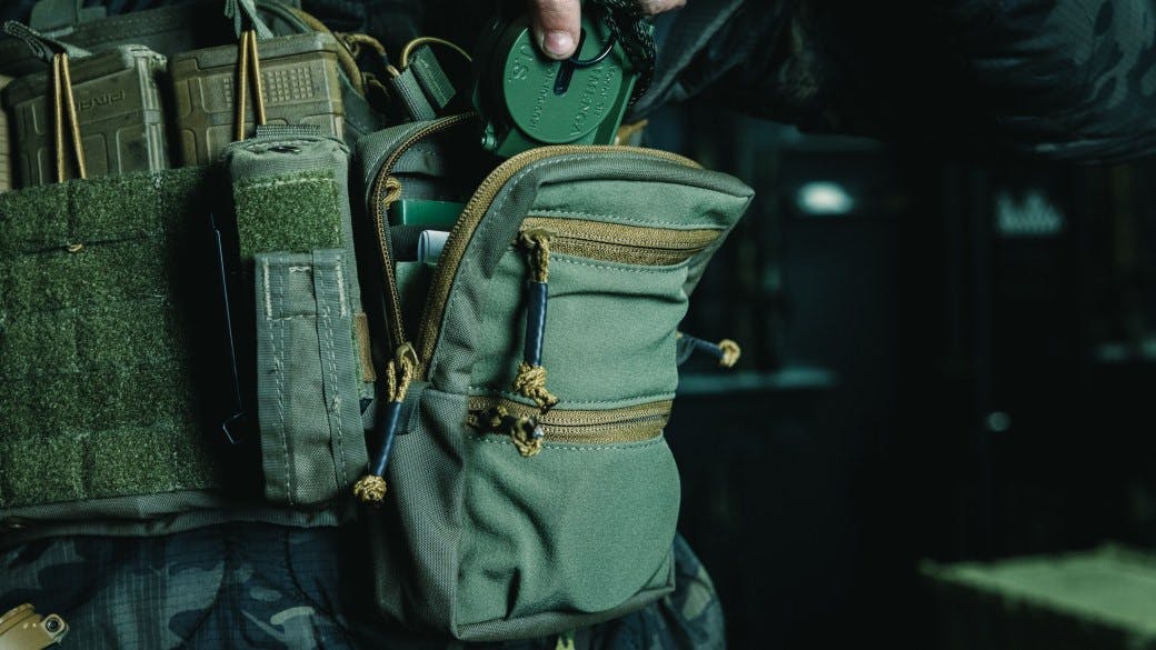 - Takes up 3 columns of MOLLE/PALS webbing.