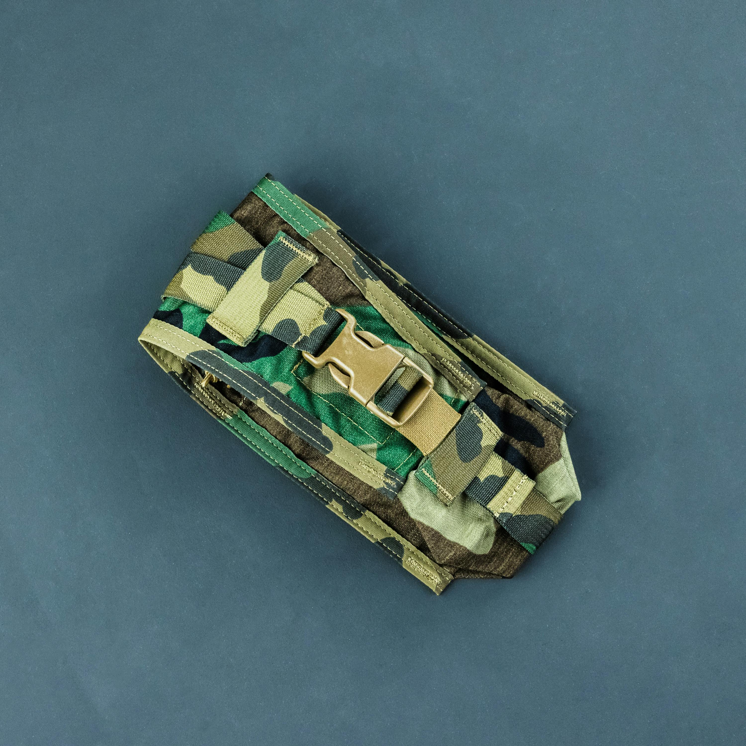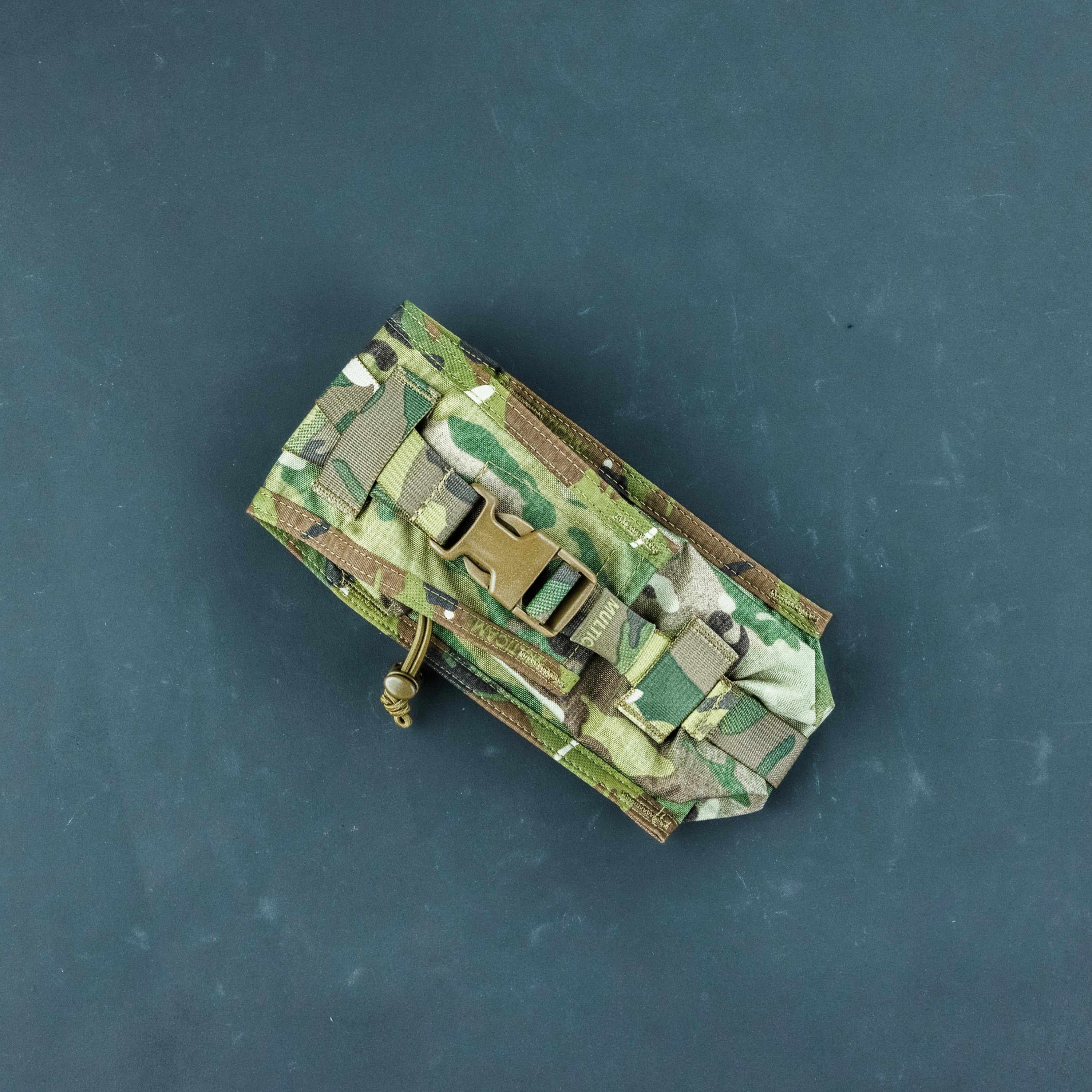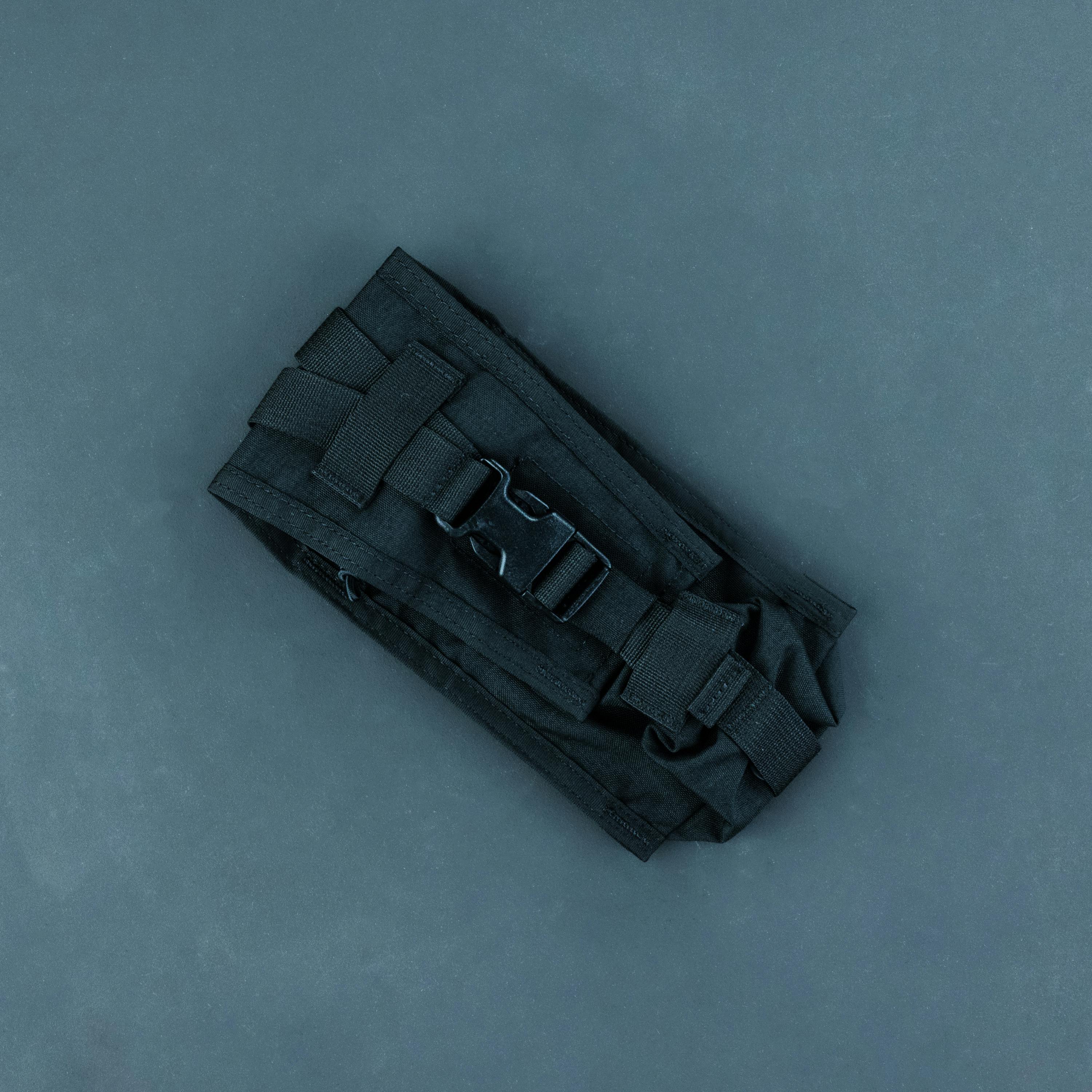 The T.REX Hydro Pouch is our optimized take on the Eagle USGI canteen pouch. It fits a 32oz. Nalgene, standard military canteen, or two standard water bottles. You can run it with the flap closed or with the flap tucked inside and the Y strap securing the bottle instead. At the top of the pouch is a shock cord cinch that allows you to tighten the pouch to fit a variety of items and keep them from bouncing around under movement. The Hydro Pouch takes up two columns of MOLLE and has a 2.25″ pass-through for belt mounting. This pouch was specifically designed around our Quad Flap Chest Rig but will work just about anywhere that has two columns of MOLLE available.
