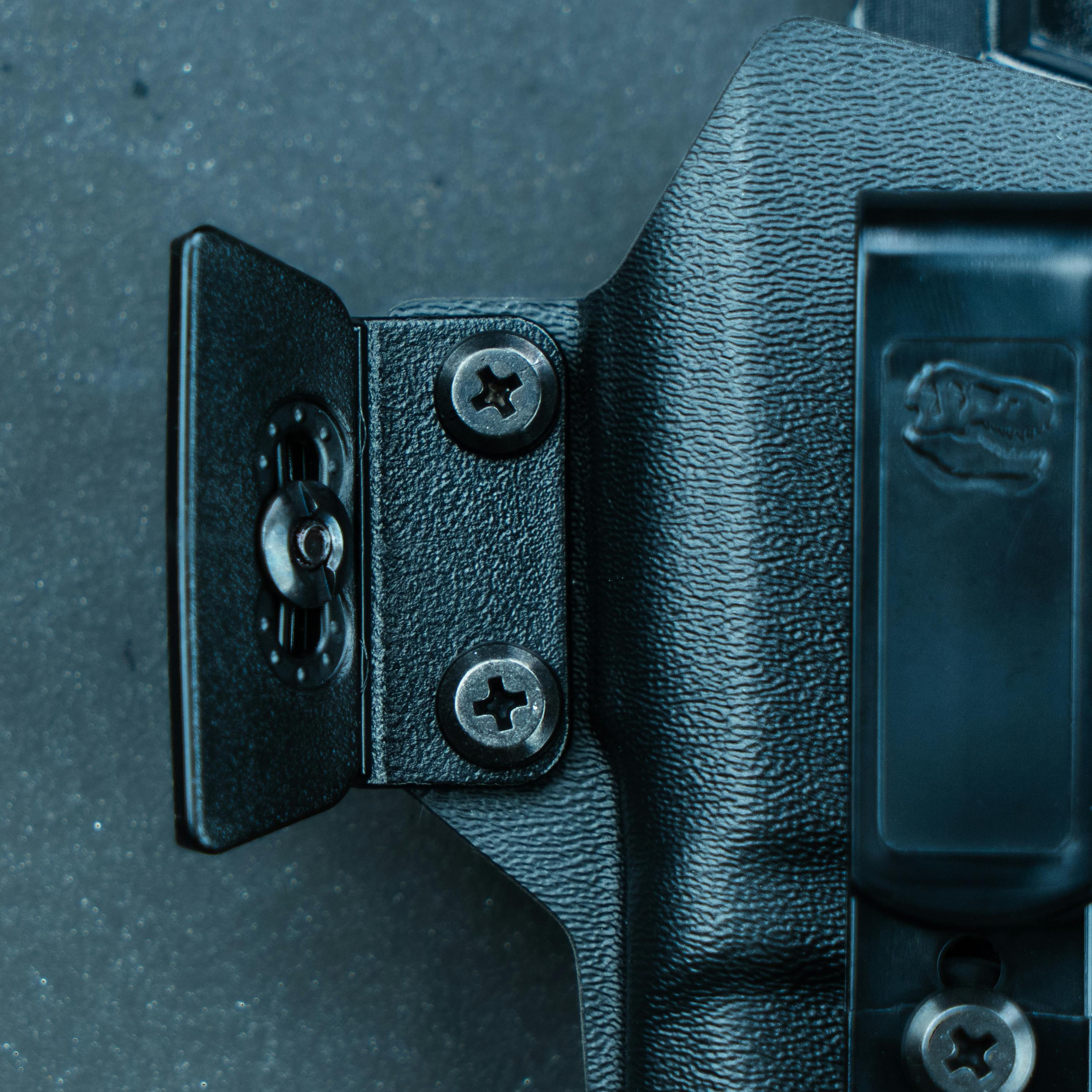 The T.REX IWB Adjustable Claw improves concealment for our inside-the-waistband Sidecar and Raptor holsters. It is attached facing outwards from the body and makes contact with the belt, driving the firearm grip into the body at a more concealable angle. The ability to adjust the Claw to fit your body type is a much-needed and requested improvement over the previous Raptor Claw design.