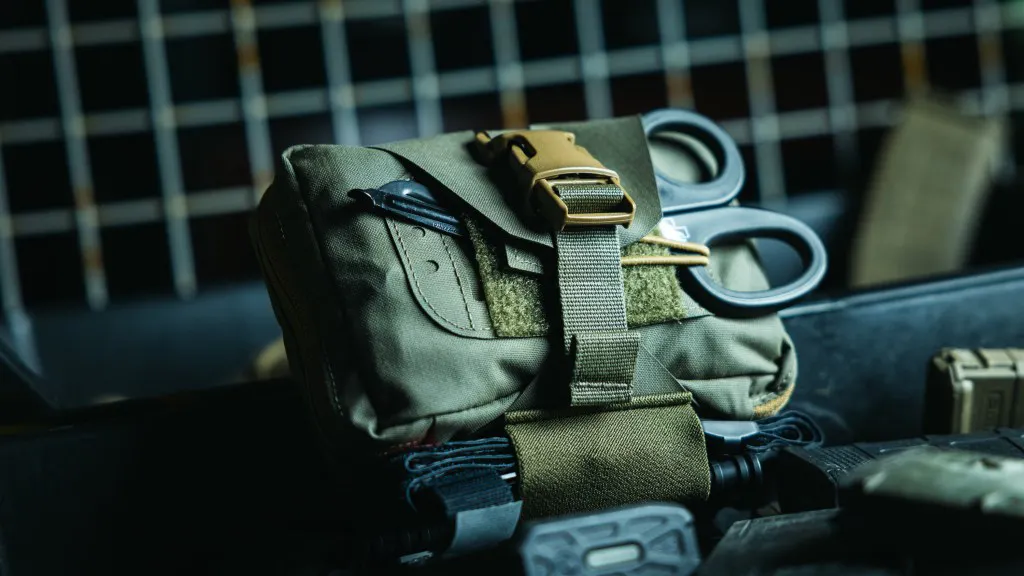 The MED-T is a belt-mounted tear-away medical pouch. Its internal layout is designed specifically around our MED-T Fill Kit to optimize space and accessibility. The fill kit contents cover as much of the MARCH algorithm (Massive hemorrhage, Airway, Respirations) as possible while maintaining a reasonable size and weight for belt-mounted use. The MED-T Platform is MOLLE compatible and offers a 1.75″ belt pass-through for direct mounting to our Speed Belt or other similar-sized belts. The MED-T also features a quick-open pull tab, an ambidextrous shear holder, and an elastic loop for tourniquets.