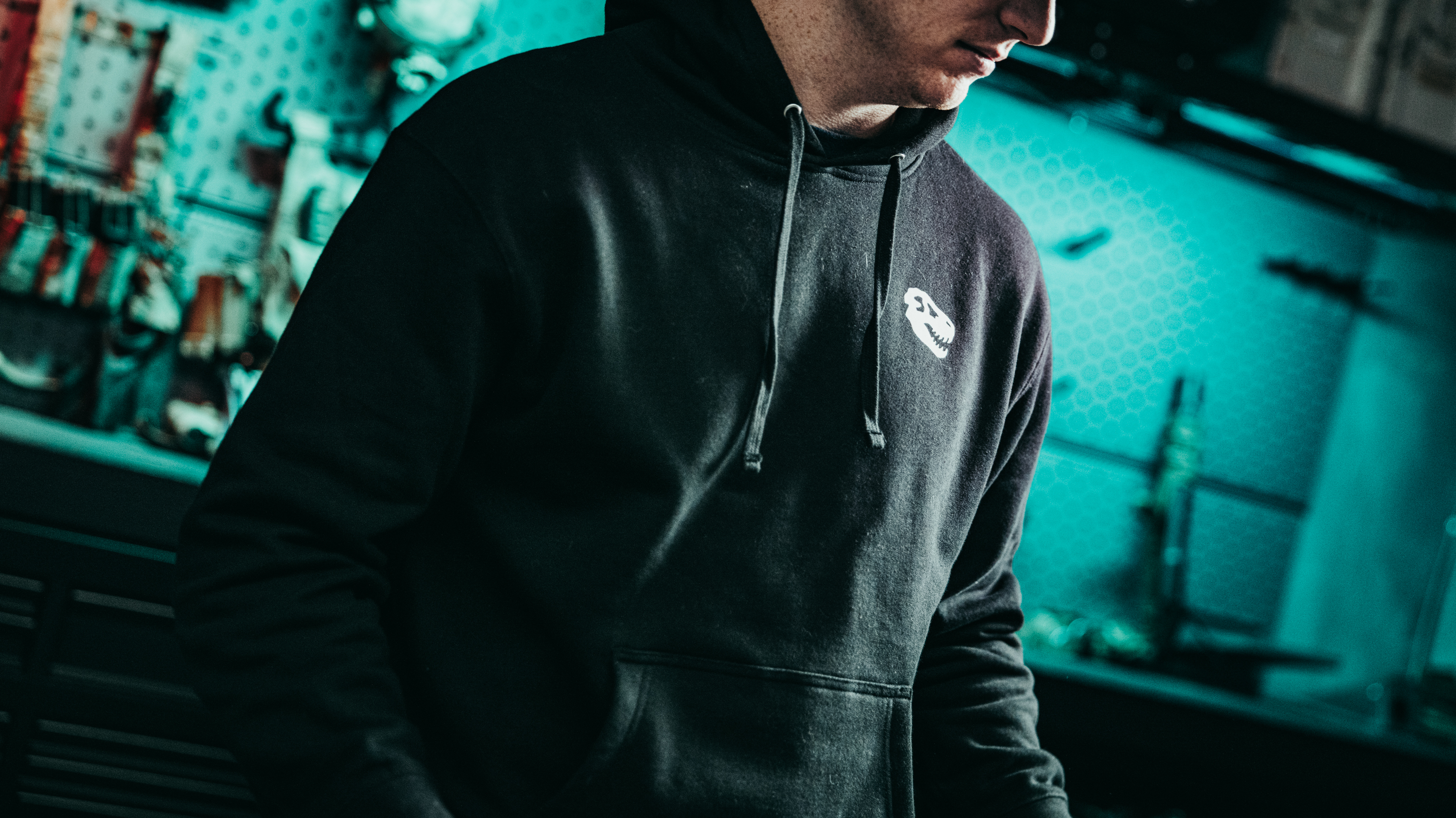 The Minimalist hoodie is exactly what it sounds like, a simple black hoodie with a small T.REX Skull on the upper left chest. No overly complicated designs or tacky screen printing like the Affliction and Tapout shirts that were in every Gen-Xer’s closet in the mid-2000s.