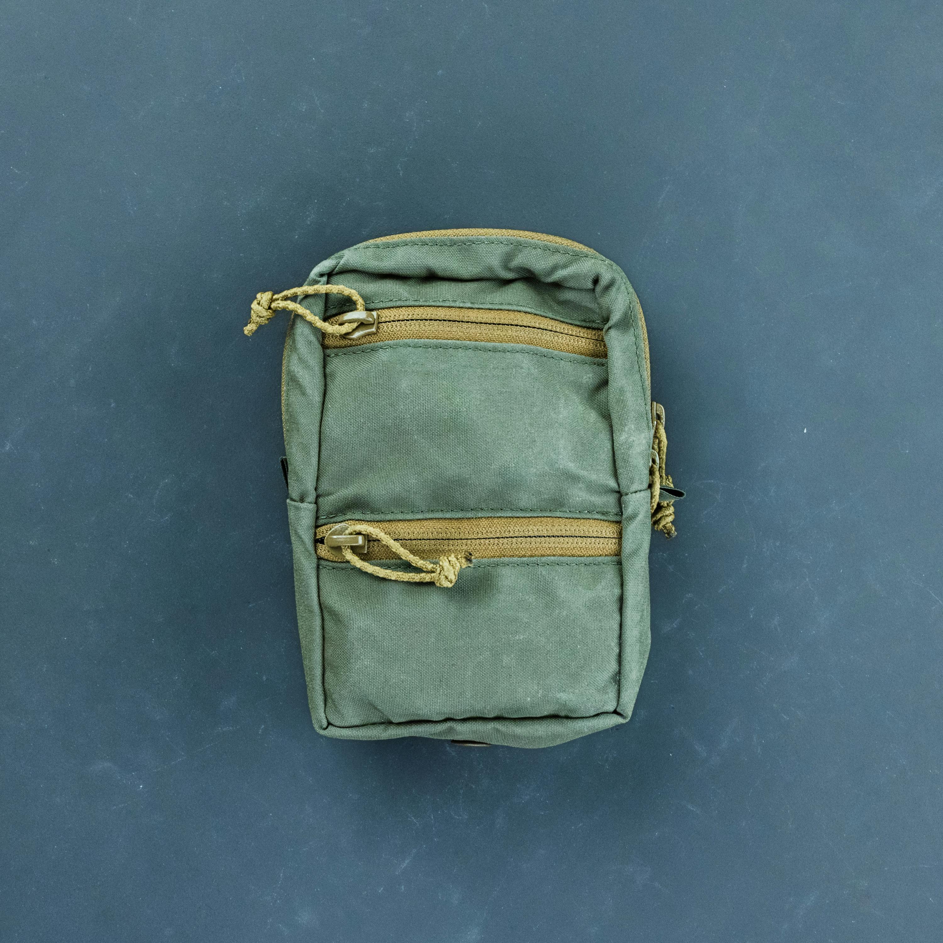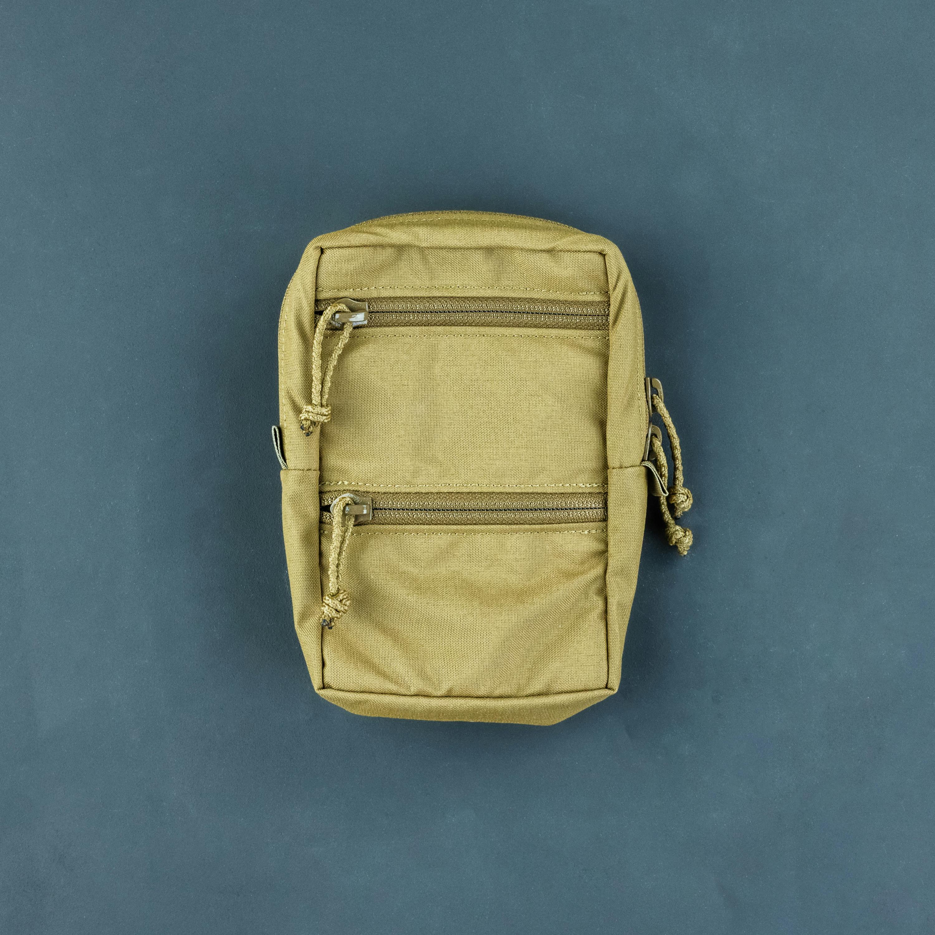 The T.REX Vertical General Purpose (GP) Pouch was built specifically not to have a specific purpose. It features two smaller zipper pockets on the front, a large main zipper pocket with a Velcro loop field, four tie-downs, and a divider pocket inside. The Vertical GP was designed with organization and form-factor in mind. Even when full, the GP remains relatively slim and keeps all the contents better organized than older style pouches that are just one large pouch with nothing inside of them. The GP takes up three columns of MOLLE or has an optional belt pass-through. Although it was designed around our Quad Flap Chest Rig, it will work in many other applications.