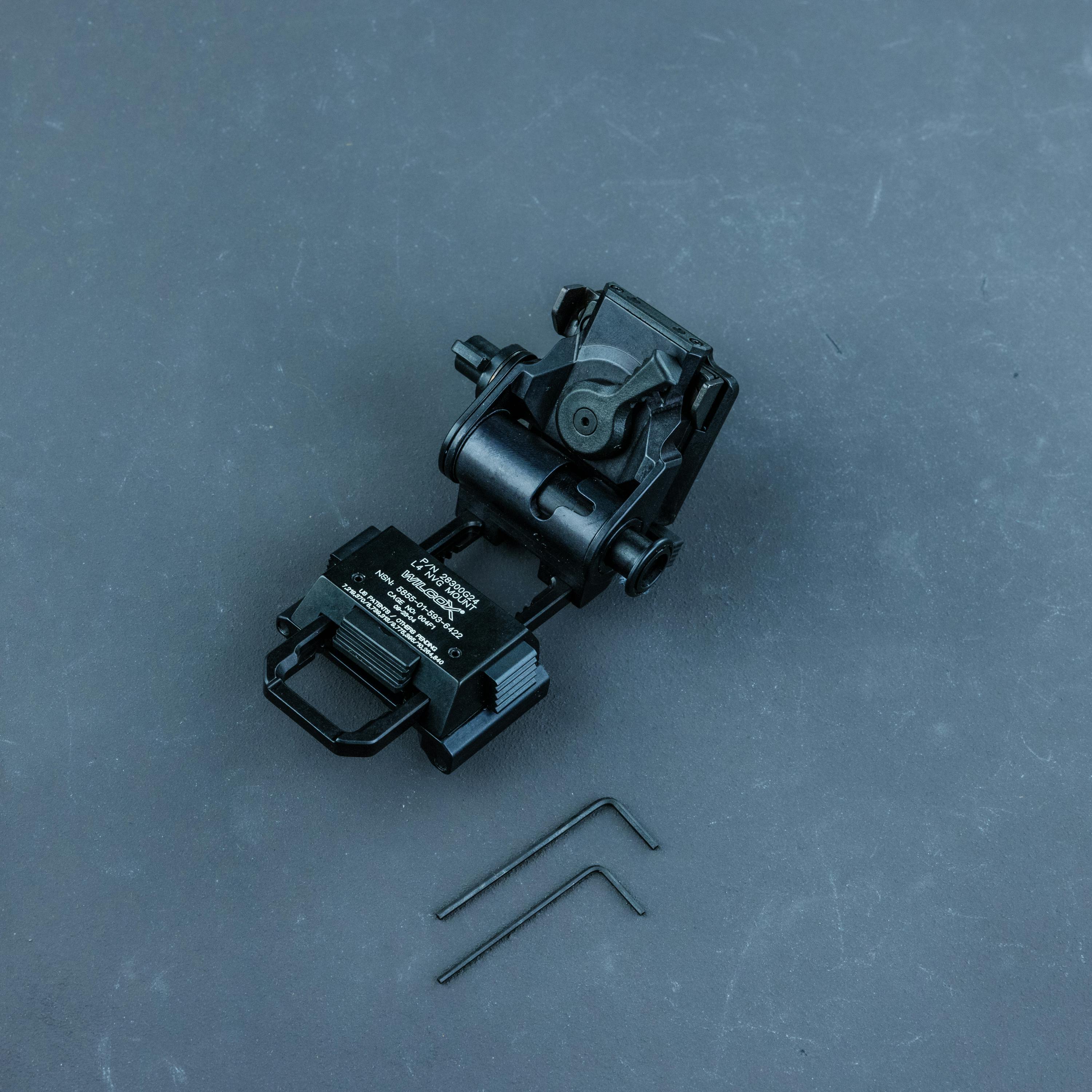 The Wilcox G24 Mount is the standard for mounting night vision devices with dovetail shoes to helmets. Simply lock this into your helmet shroud, attach your NODs via the dovetail shoe, hook a retention device to your NODs, and then articulate the G24 up and down with a simple press of the side locking button. You can adjust nearly every aspect of how your NODs fit in relation to your eye with the tilt adjustment knob, the vertical height adjustment lever, and the fore/aft release button.