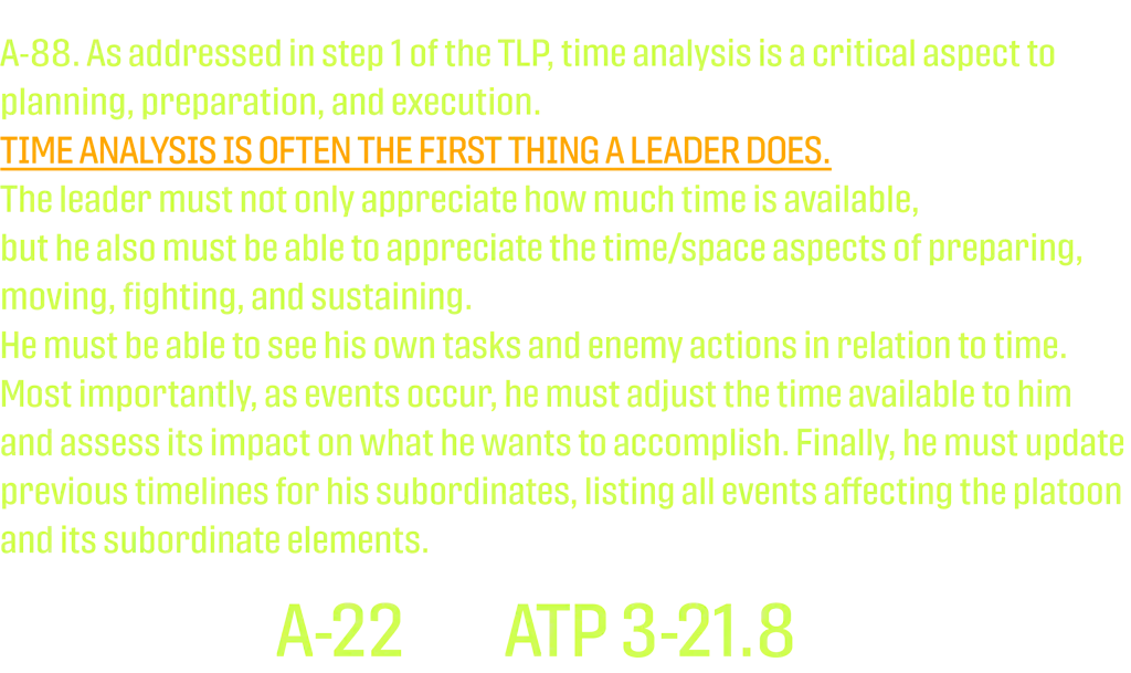We've worked through Mission, Enemy, Terrain, and Weather, and now we are going to cover the next two mission variables: 1) Troops & Fire Support Available and 2) Time Available.